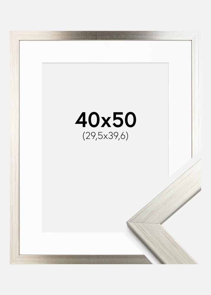 Ramme Silver Wood 40x50 cm - Passepartout Hvit 12x16 inches