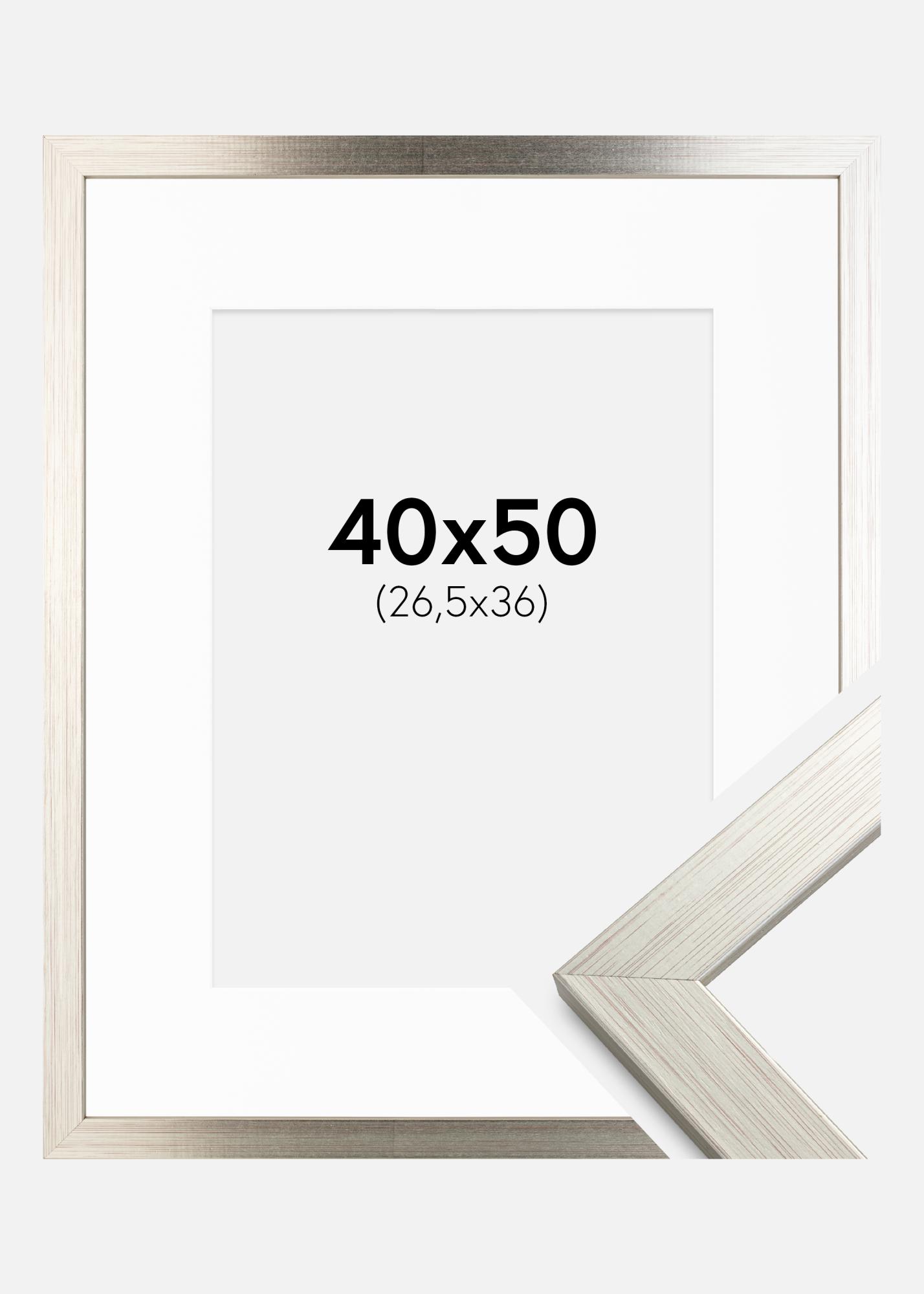 Ramme Silver Wood 40x50 cm - Passepartout Hvit 27,5x37 cm
