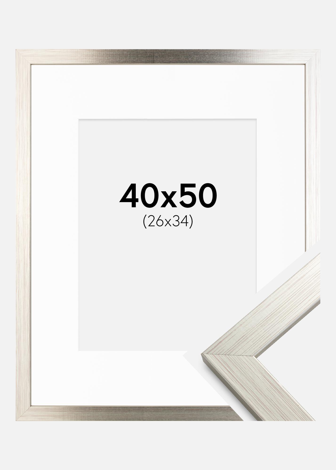 Ramme Silver Wood 40x50 cm - Passepartout Hvit 27x35 cm