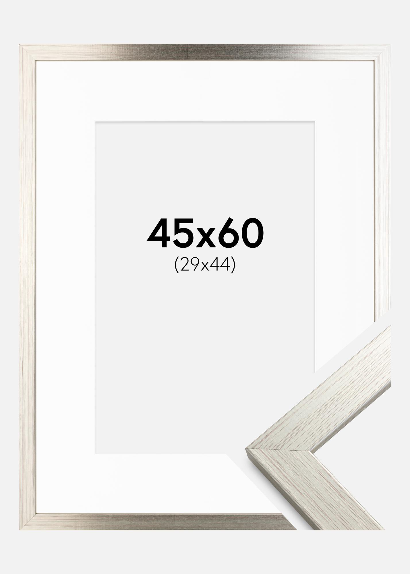 Ramme Silver Wood 45x60 cm - Passepartout Hvit 30x45 cm