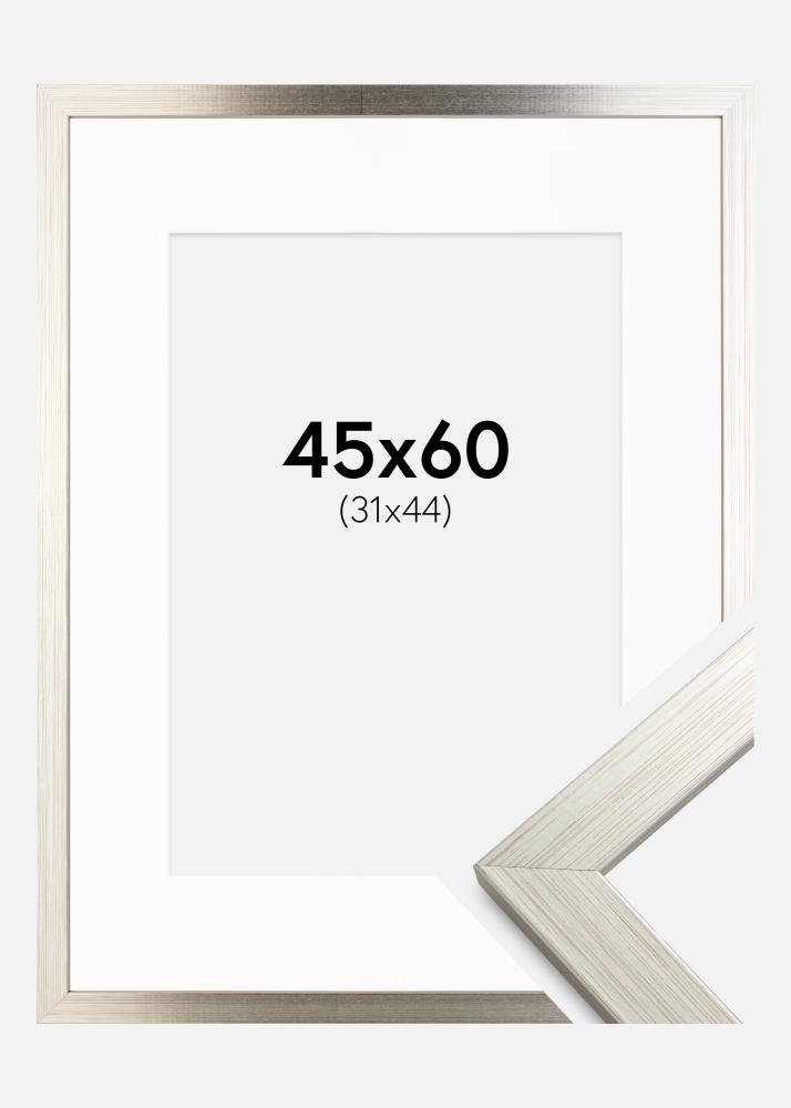 Ramme Silver Wood 45x60 cm - Passepartout Hvit 32x45 cm