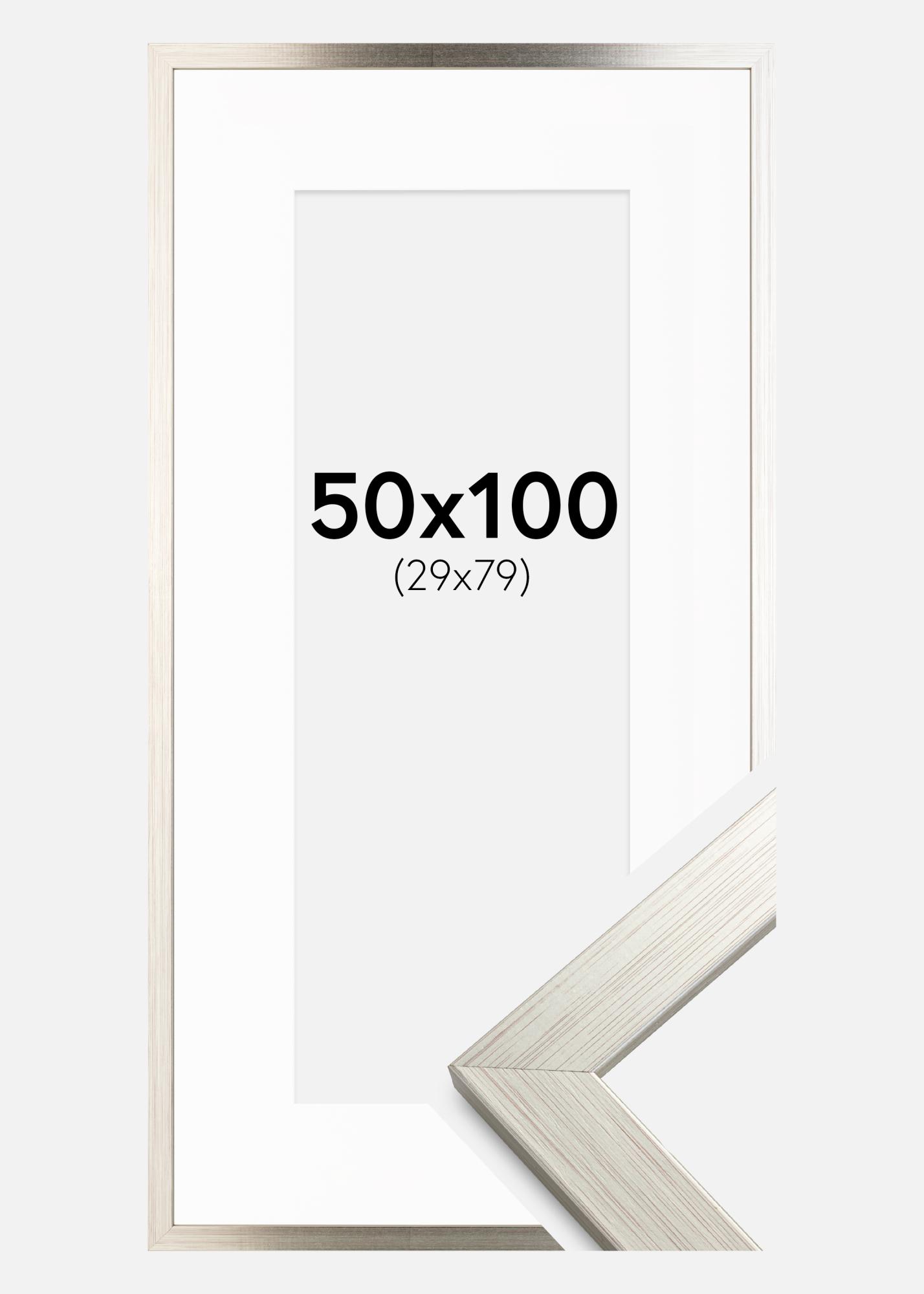 Ramme Silver Wood 50x100 cm - Passepartout Hvit 30x80 cm