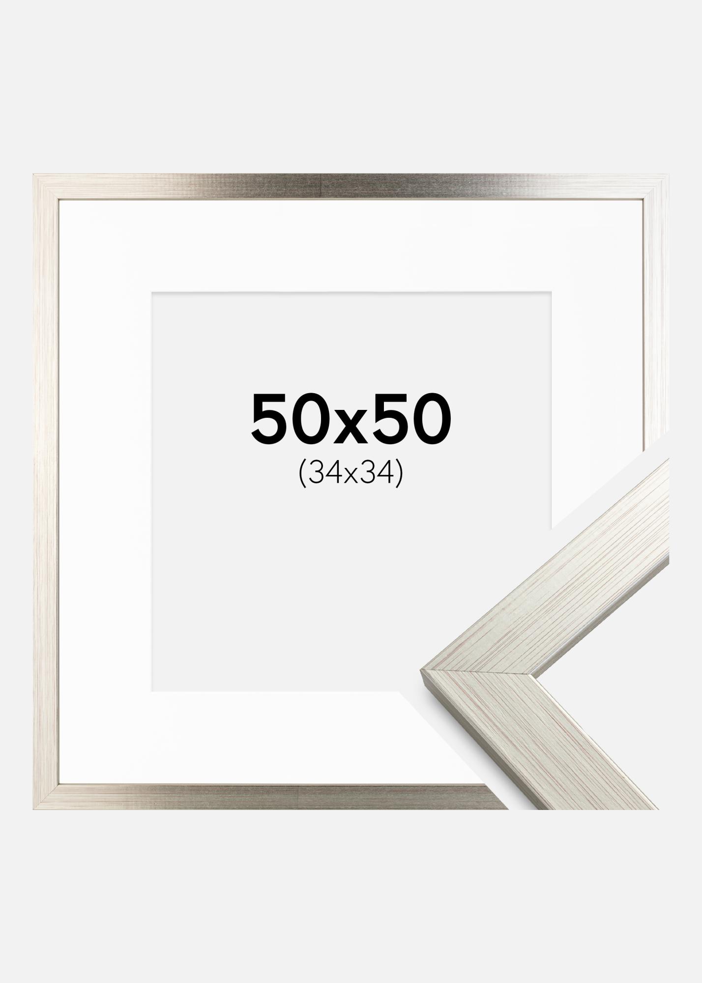 Ramme Silver Wood 50x50 cm - Passepartout Hvit 35x35 cm