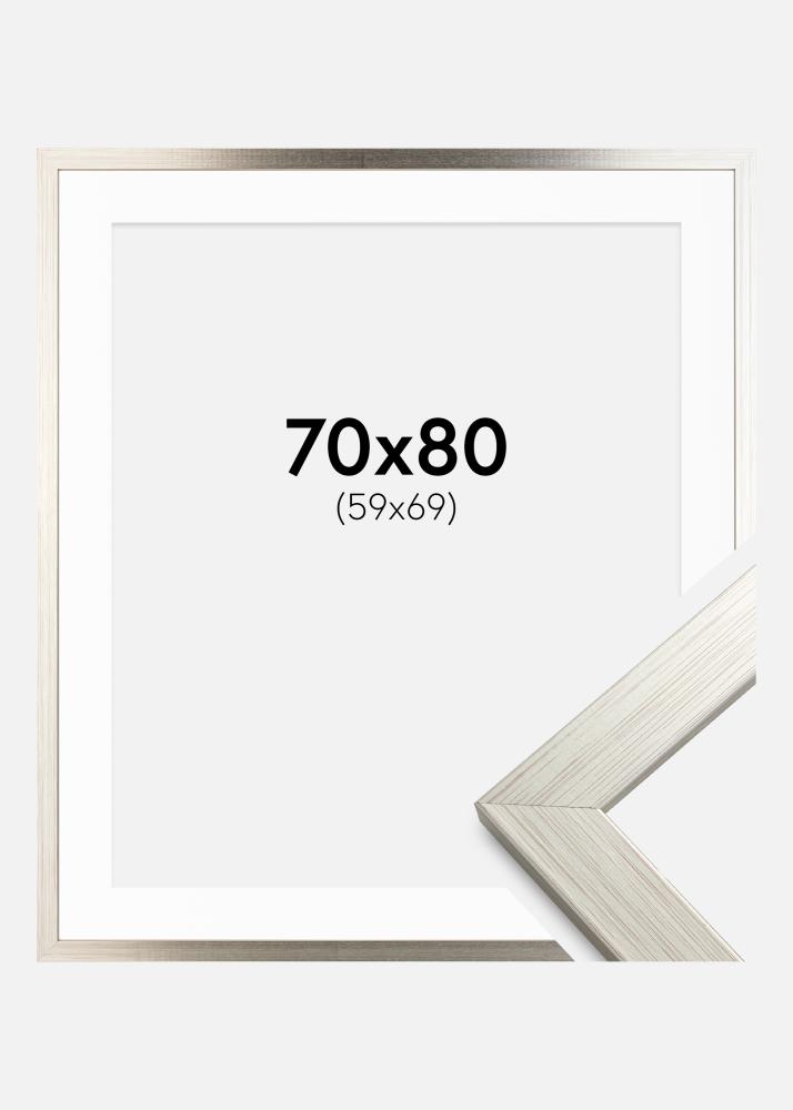 Ramme Silver Wood 70x80 cm - Passepartout Hvit 60x70 cm