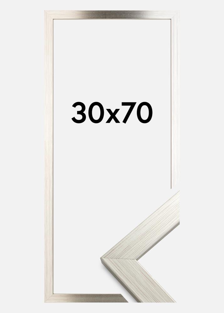 Gi bildene dine den oppmerksomheten de fortjener med denne elegante sølvfargede rammen i størrelsen 30x70 cm. Det stilfulle designet suppleres av en sofistikert ramme som har en bredde på 22 mm, noe som gir et tydelig og moderne inntrykk på veggen.