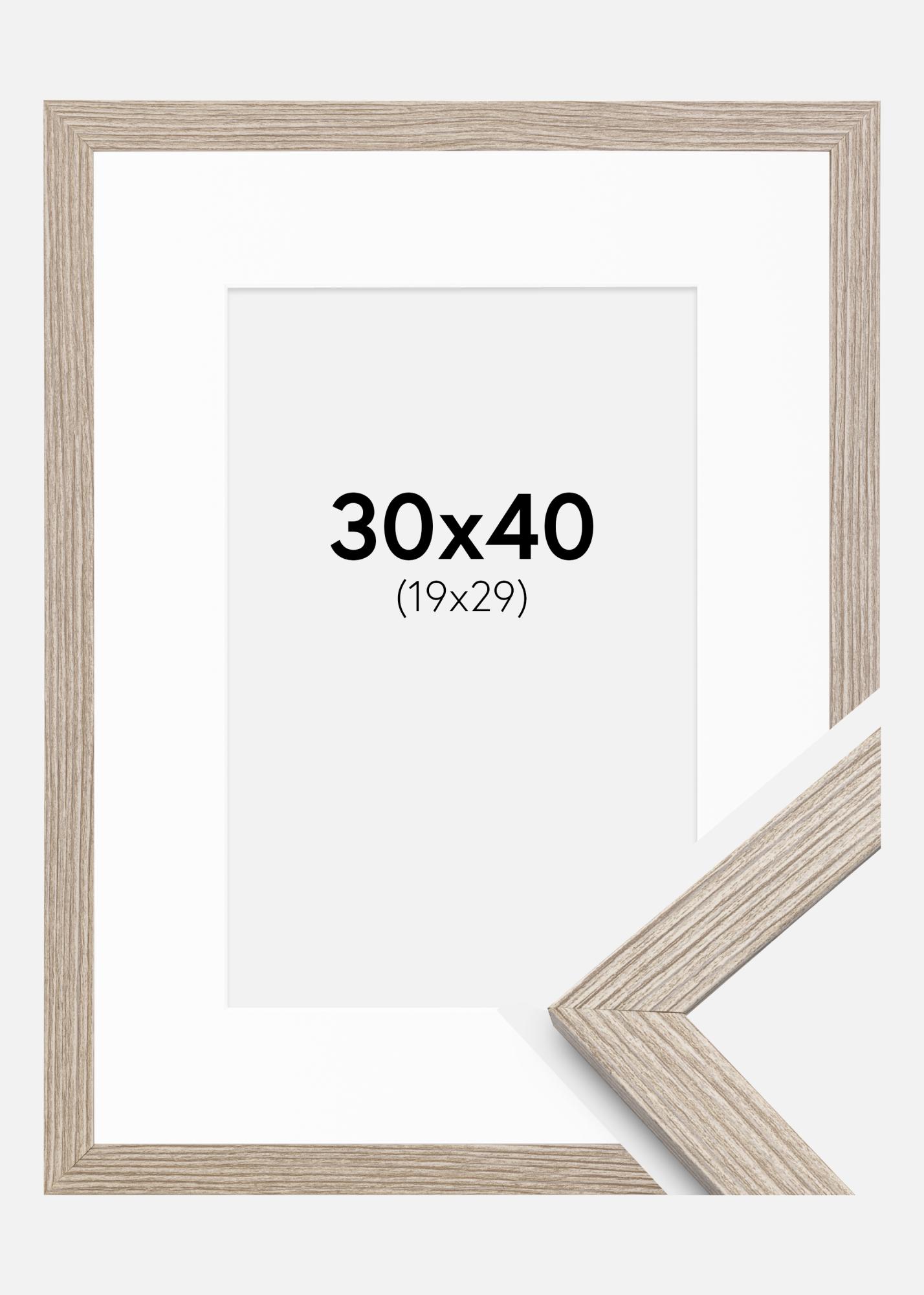 Ramme Stilren Greige eik 30x40 cm - Passepartout Hvit 20x30 cm
