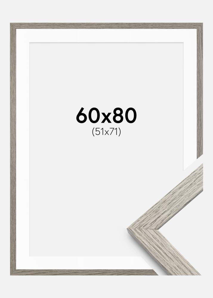 Ramme Stilren grå eik 60x80 cm - Passepartout Hvit 52x72 cm