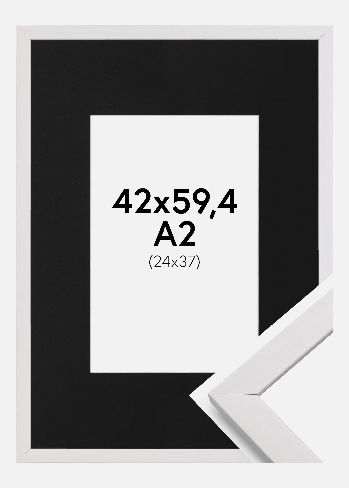 Ramme Stilren Hvit 42x59,4 cm (A2) - Passepartout Svart 25x38 cm