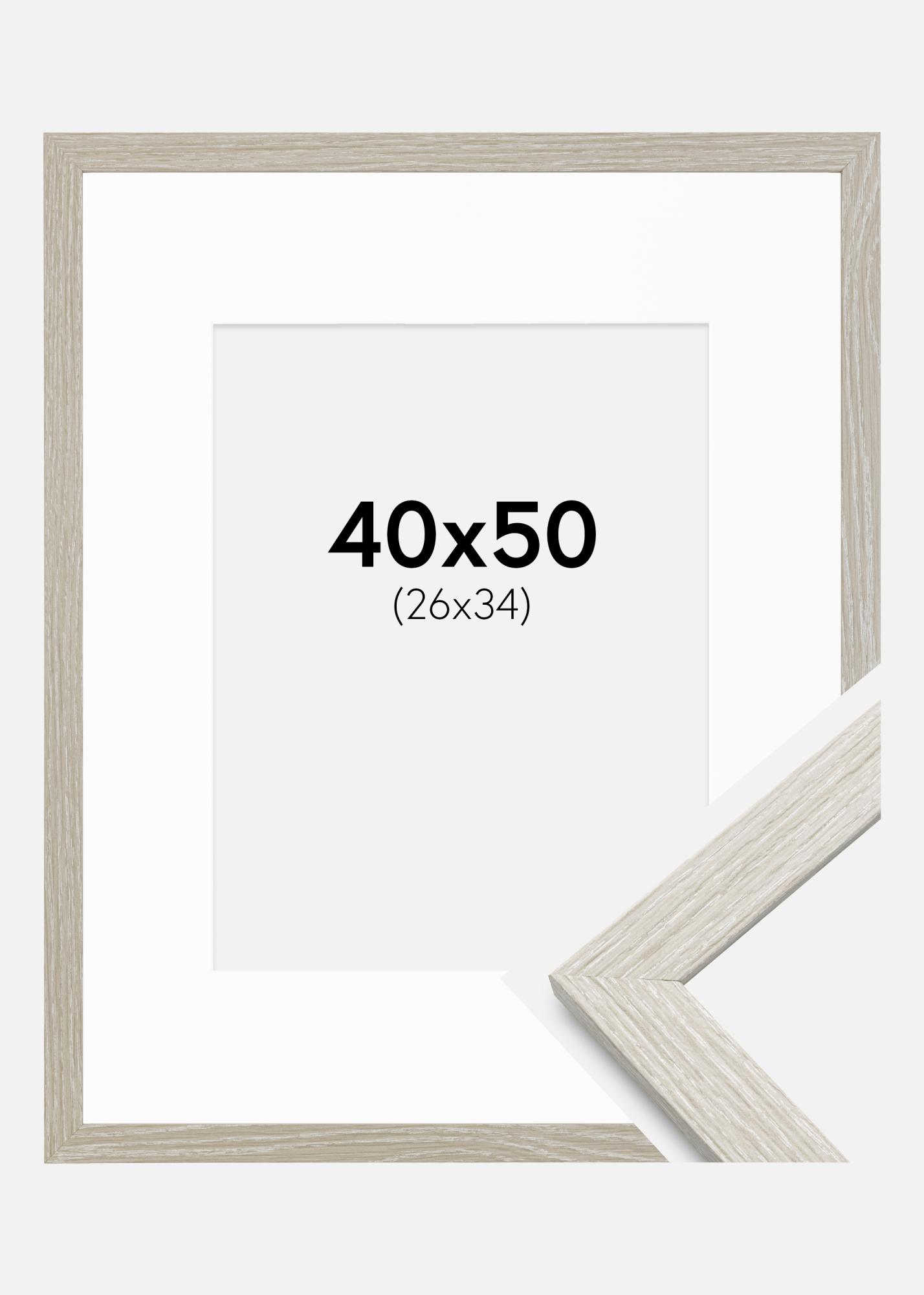 Ramme Stilren lys grå eik 40x50 cm - Passepartout Hvit 27x35 cm