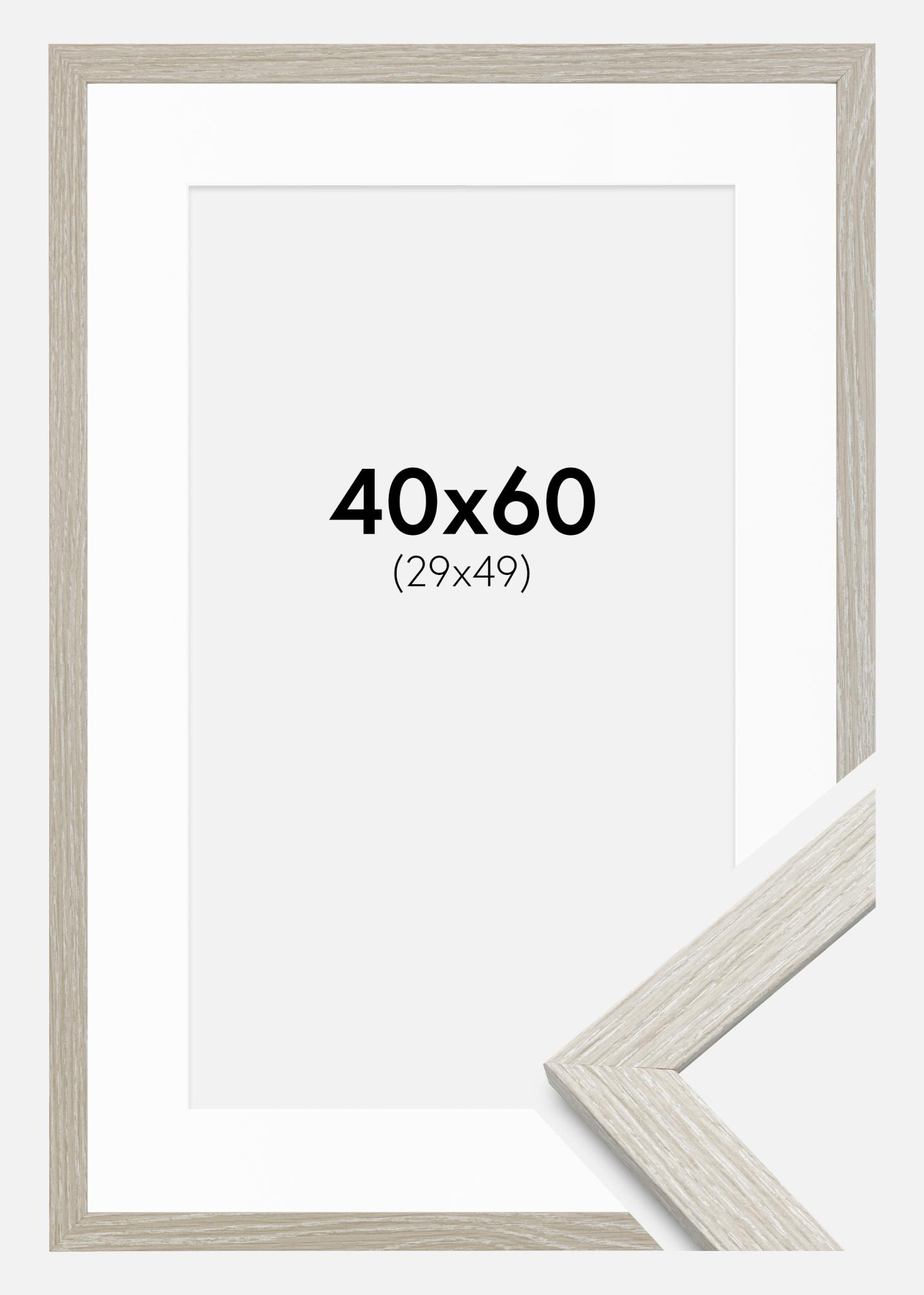 Ramme Stilren lys grå eik 40x60 cm - Passepartout Hvit 30x50 cm