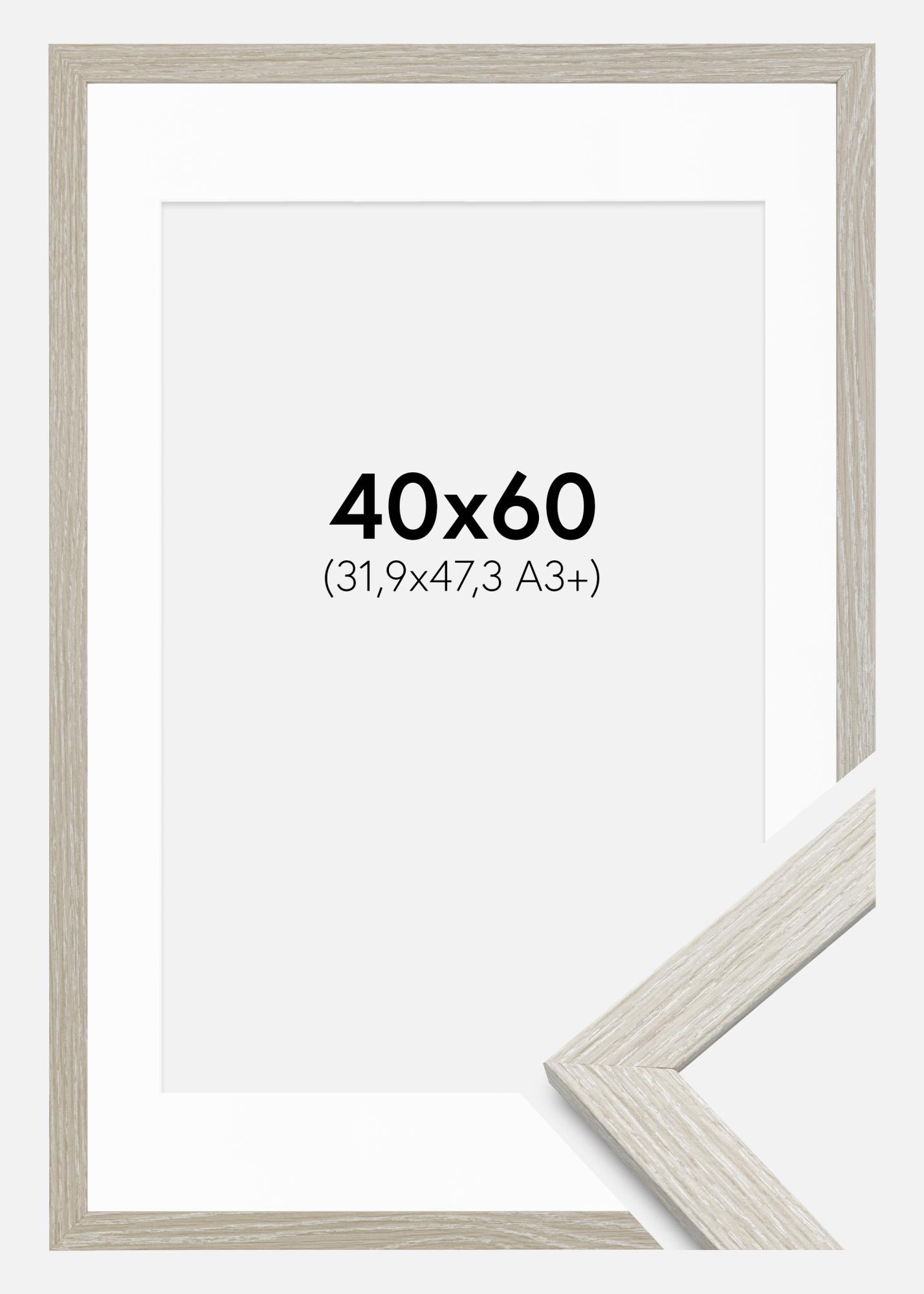 Ramme Stilren lys grå eik 40x60 cm - Passepartout Hvit 32,9x48,3 cm