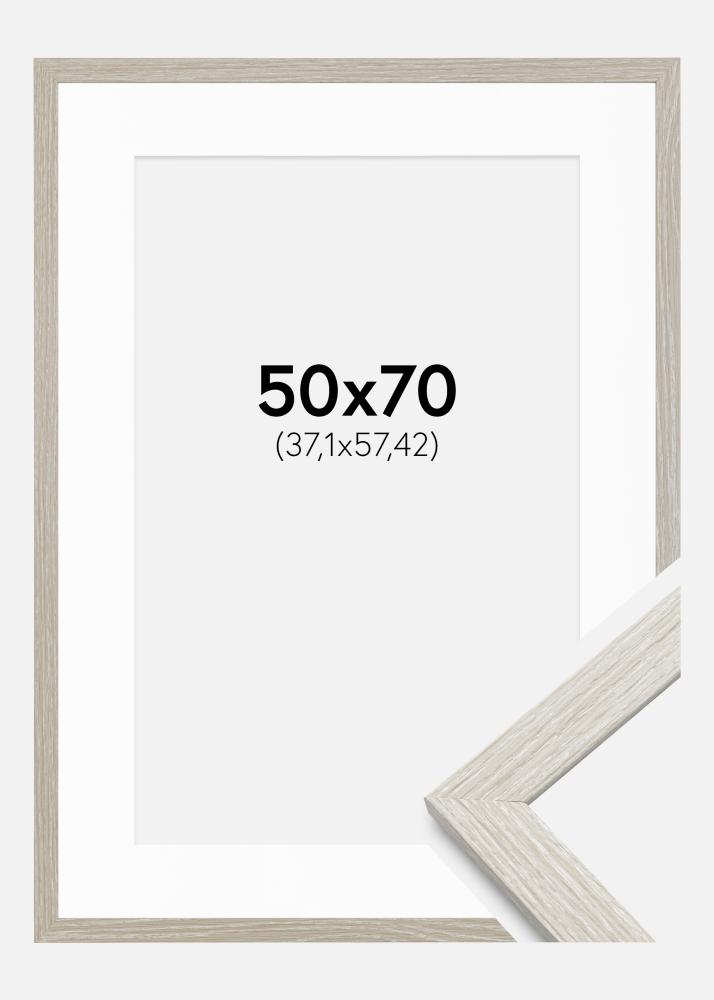 Ramme Stilren lys grå eik 50x70 cm - Passepartout Hvit 15x23 inches
