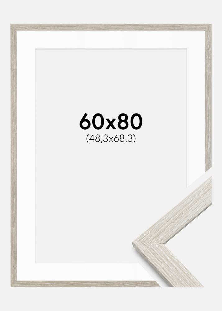 Ramme Stilren lys grå eik 60x80 cm - Passepartout Hvit 49,3x69,3 cm