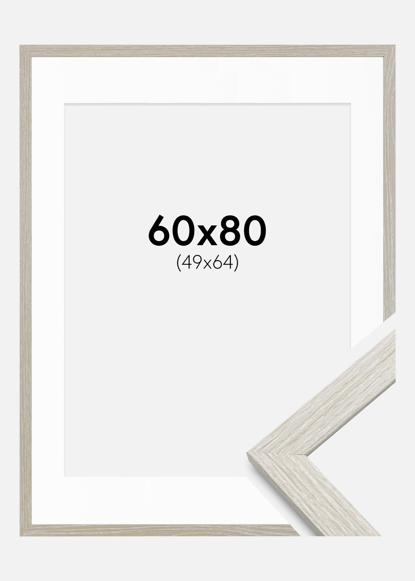 Ramme Stilren lys grå eik 60x80 cm - Passepartout Hvit 50x65 cm