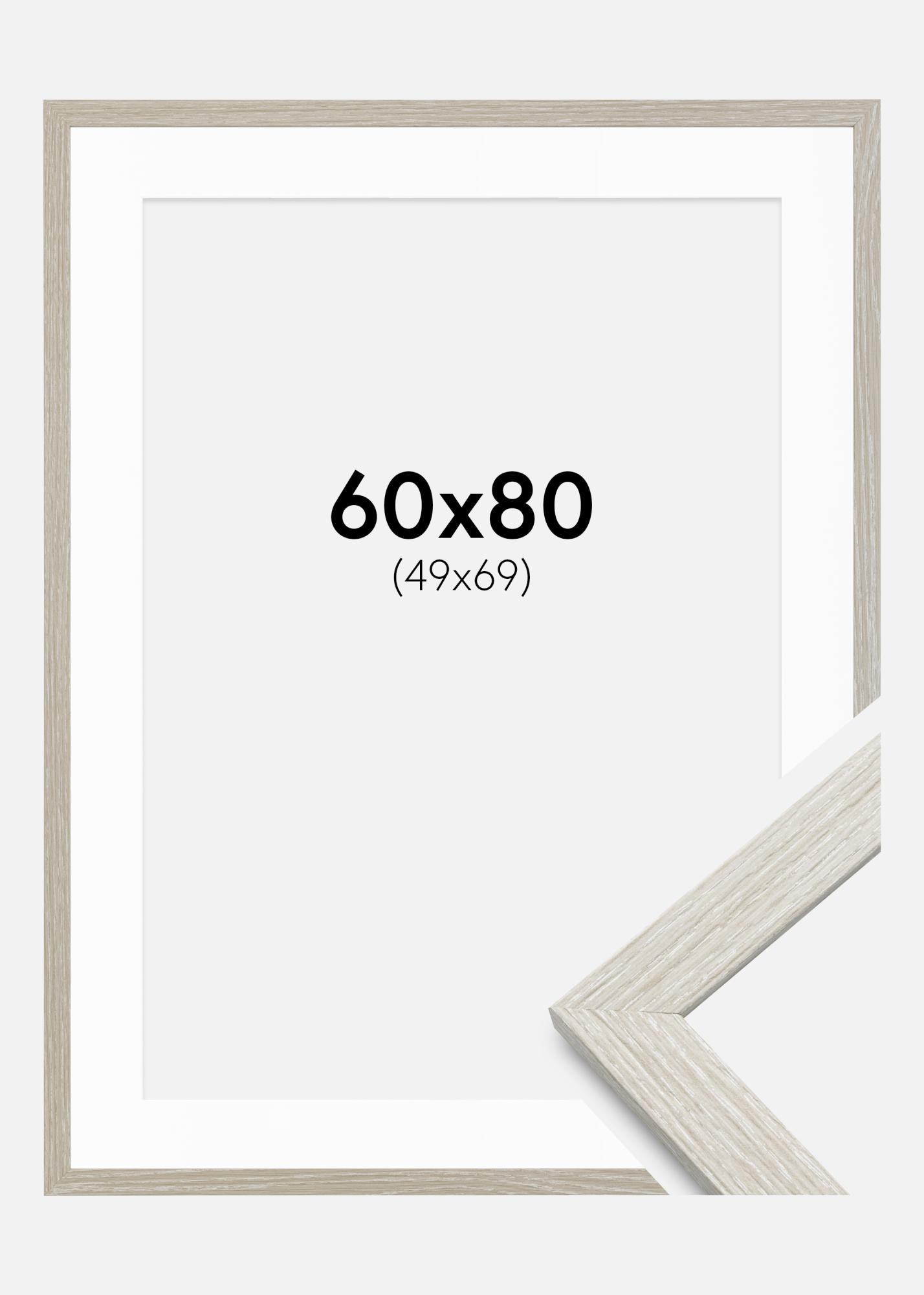 Ramme Stilren lys grå eik 60x80 cm - Passepartout Hvit 50x70 cm