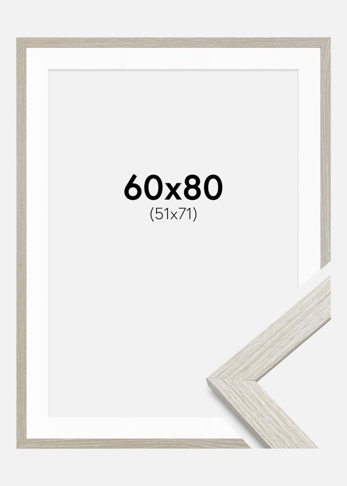 Ramme Stilren lys grå eik 60x80 cm - Passepartout Hvit 52x72 cm