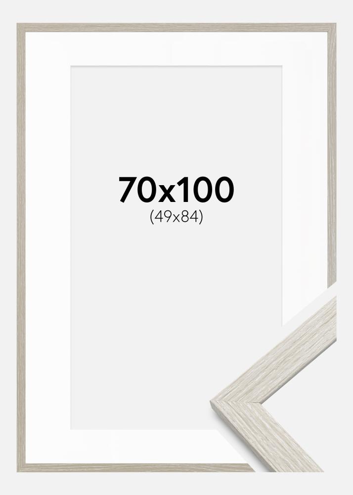 Ramme Stilren lys grå eik 70x100 cm - Passepartout Hvit 50x85 cm