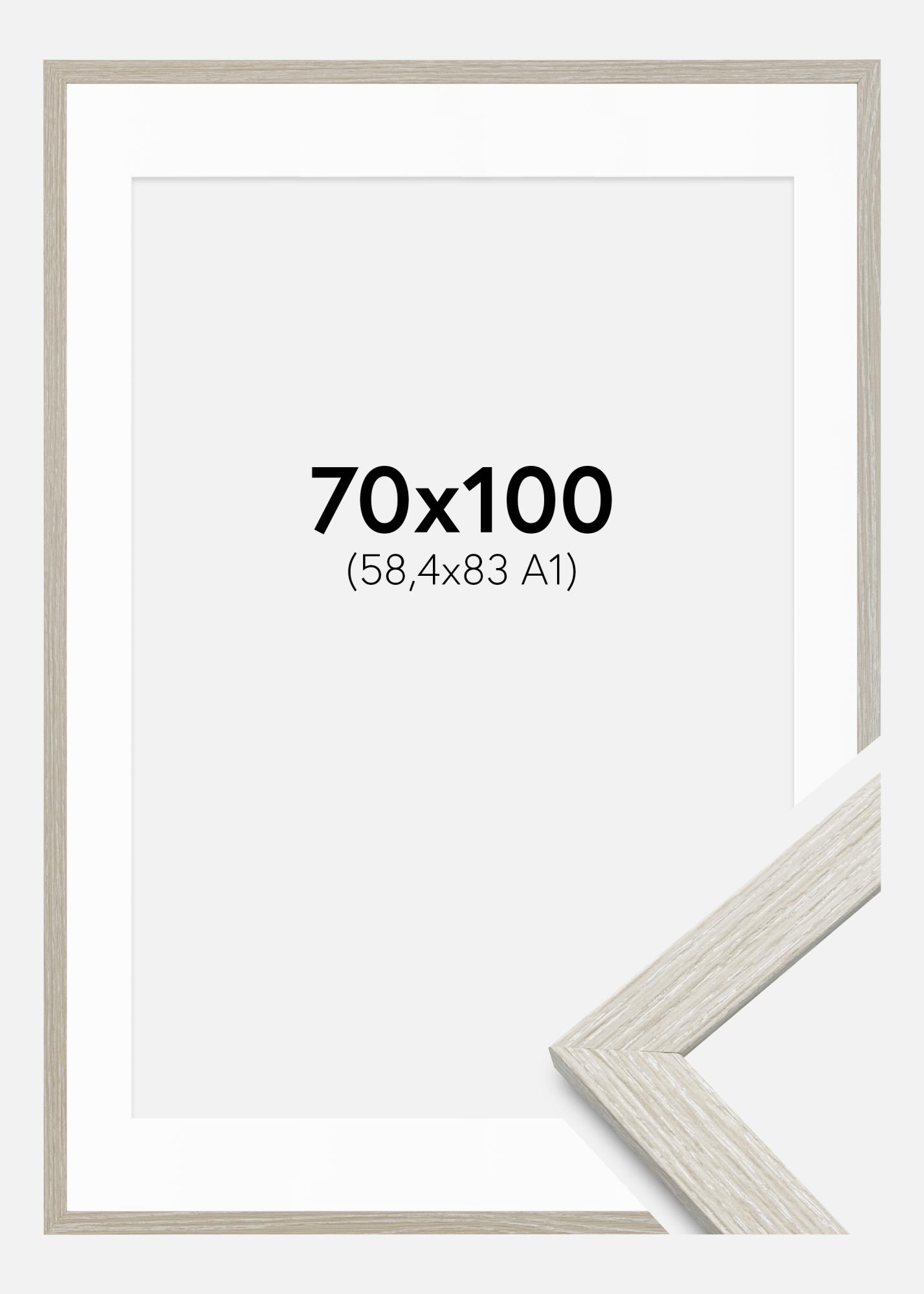 Ramme Stilren lys grå eik 70x100 cm - Passepartout Hvit 59,4x84 cm