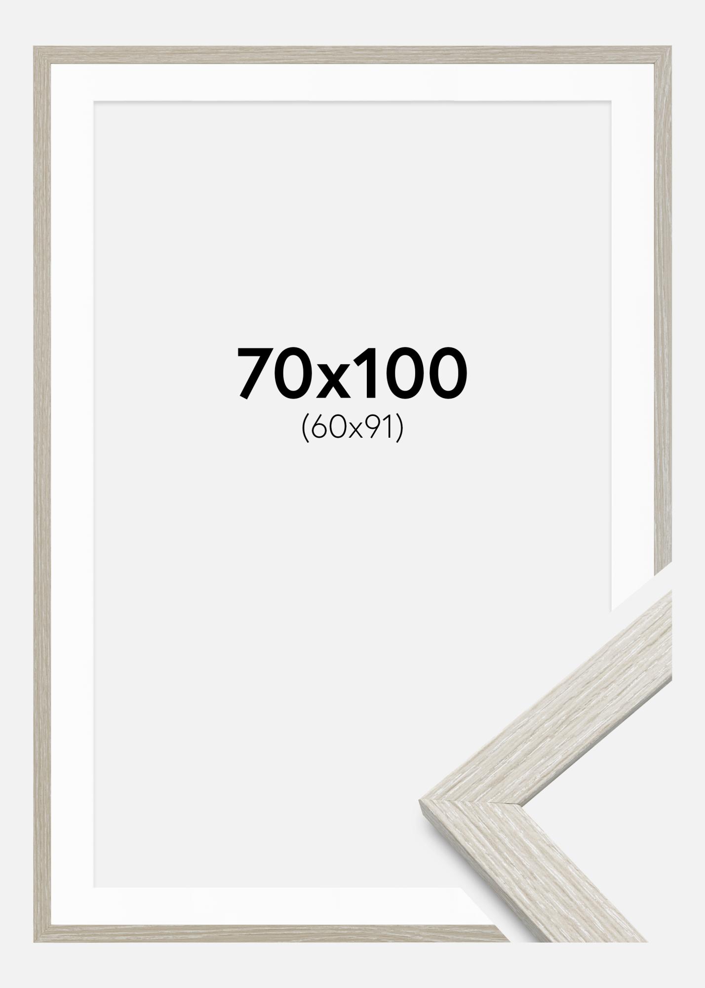 Ramme Stilren lys grå eik 70x100 cm - Passepartout Hvit 61x92 cm