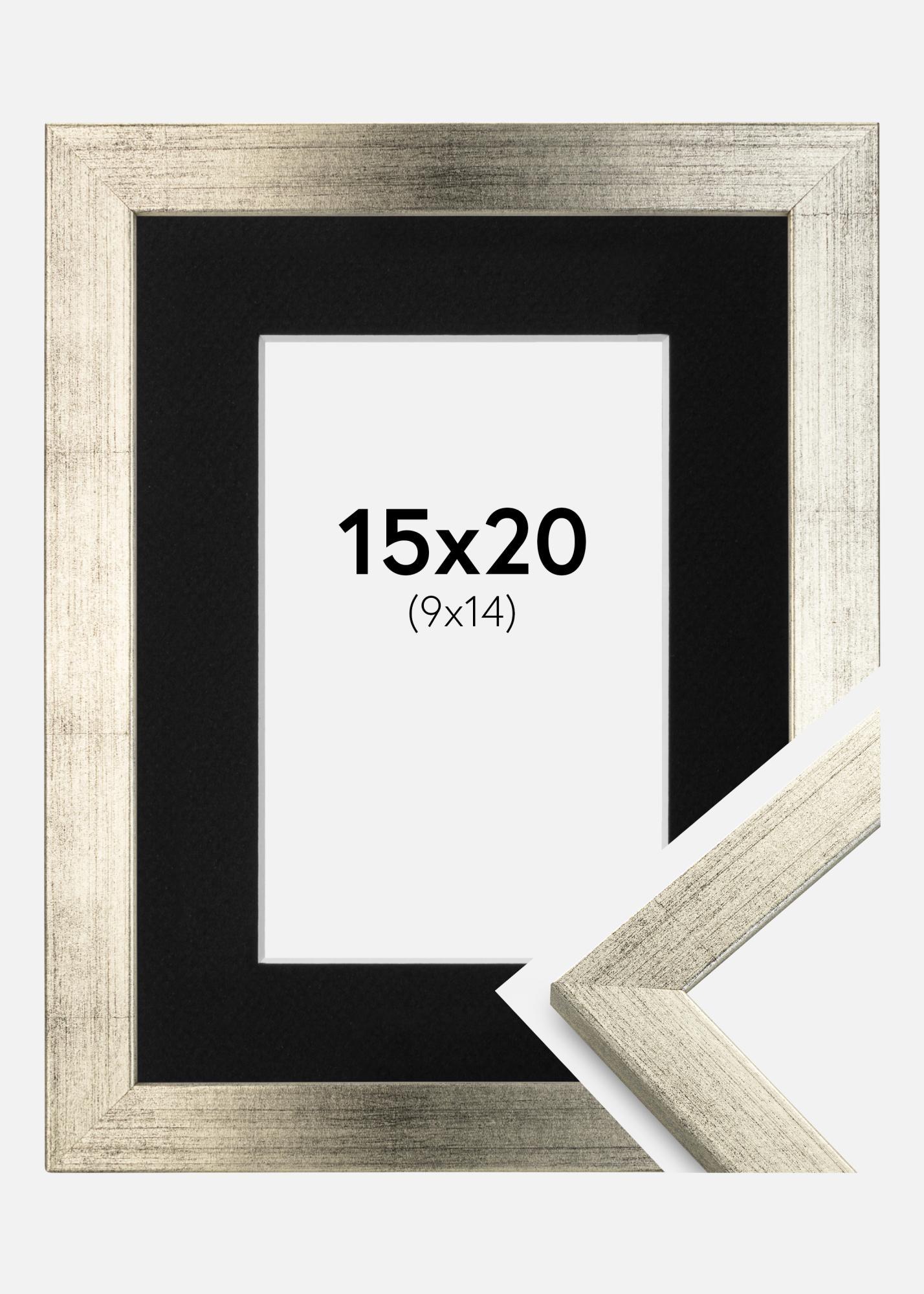 Ramme Stilren Sølv 15x20 cm - Passepartout Svart 10x15 cm