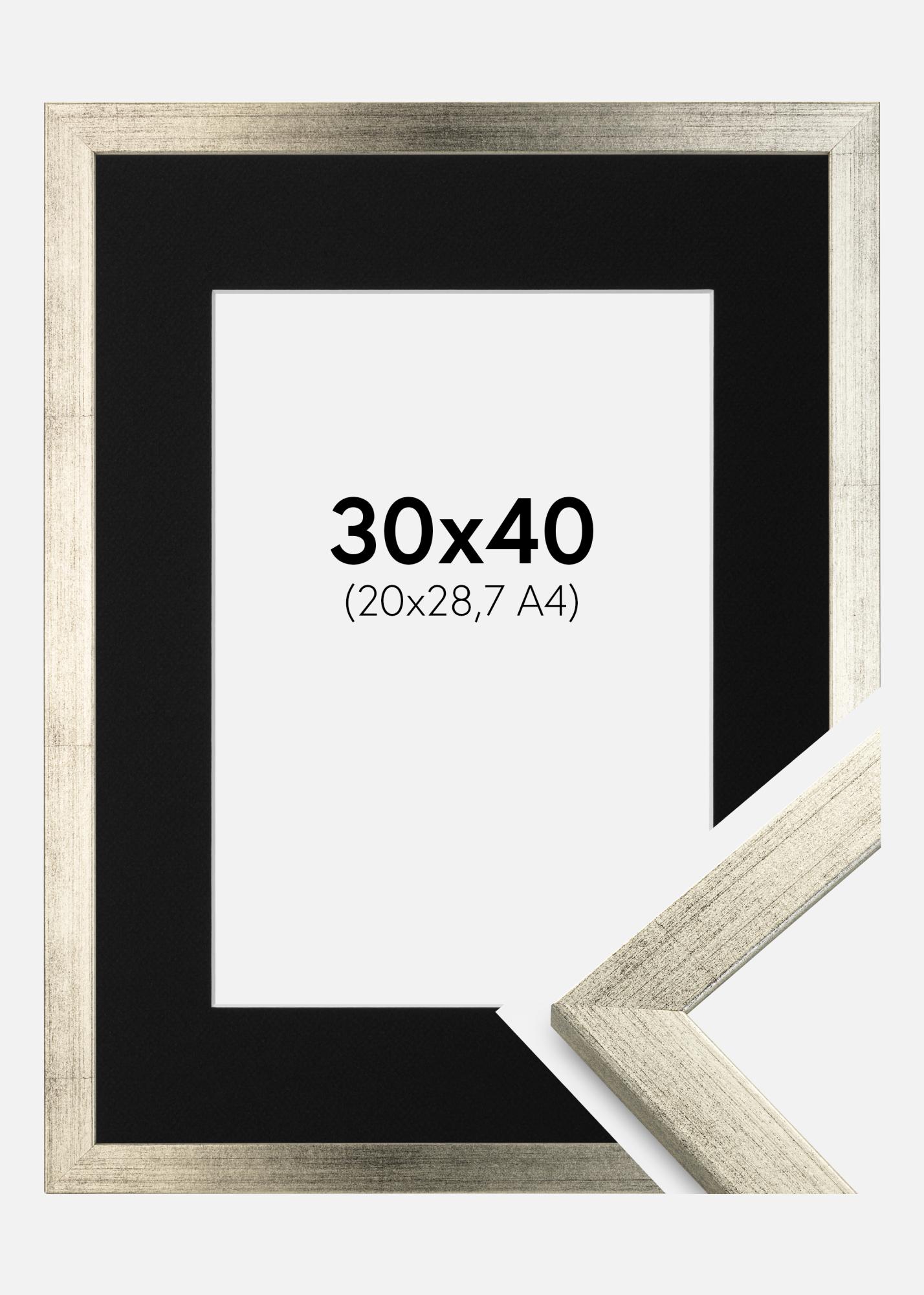 Ramme Stilren Sølv 30x40 cm - Passepartout Svart 21x29,7 cm (A4)