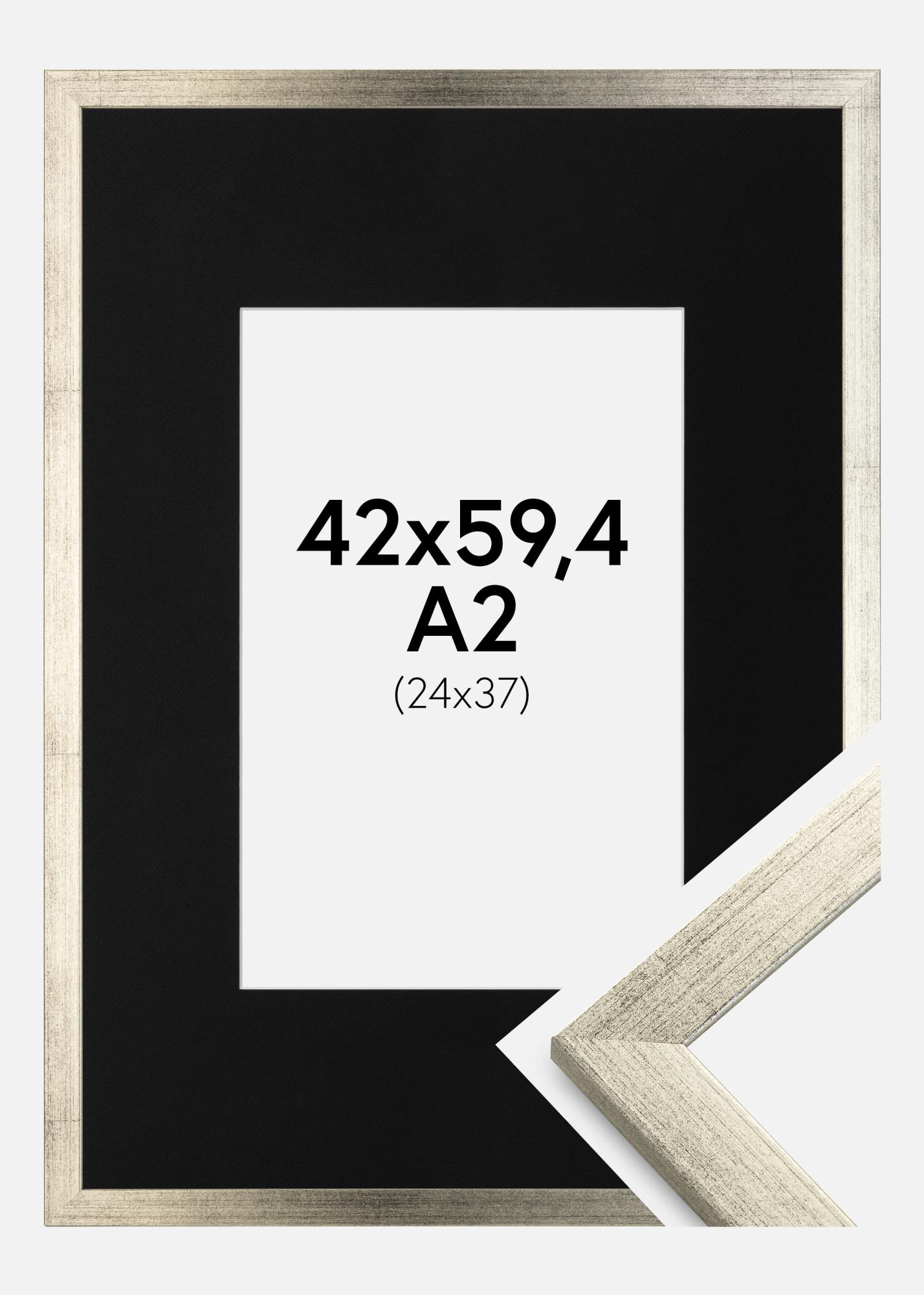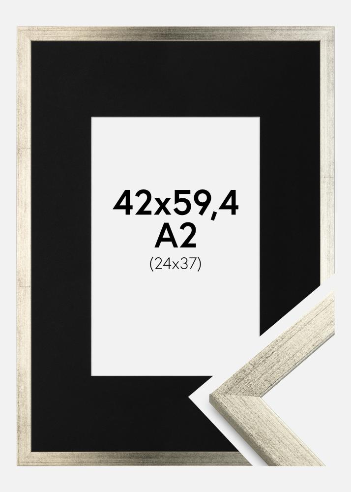 Ramme Stilren Sølv 42x59,4 cm (A2) - Passepartout Svart 25x38 cm