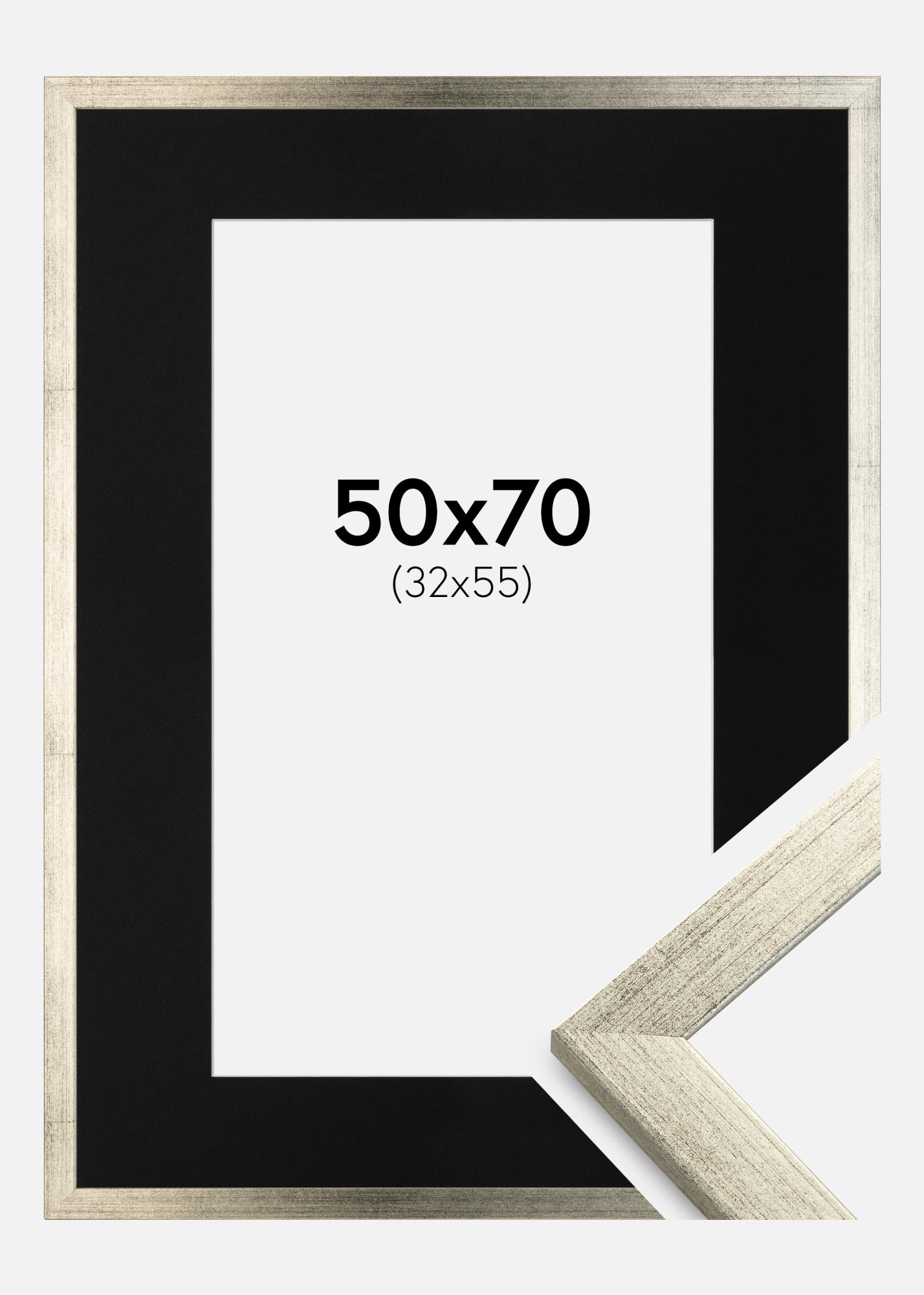 Ramme Stilren Sølv 50x70 cm - Passepartout Svart 33x56 cm