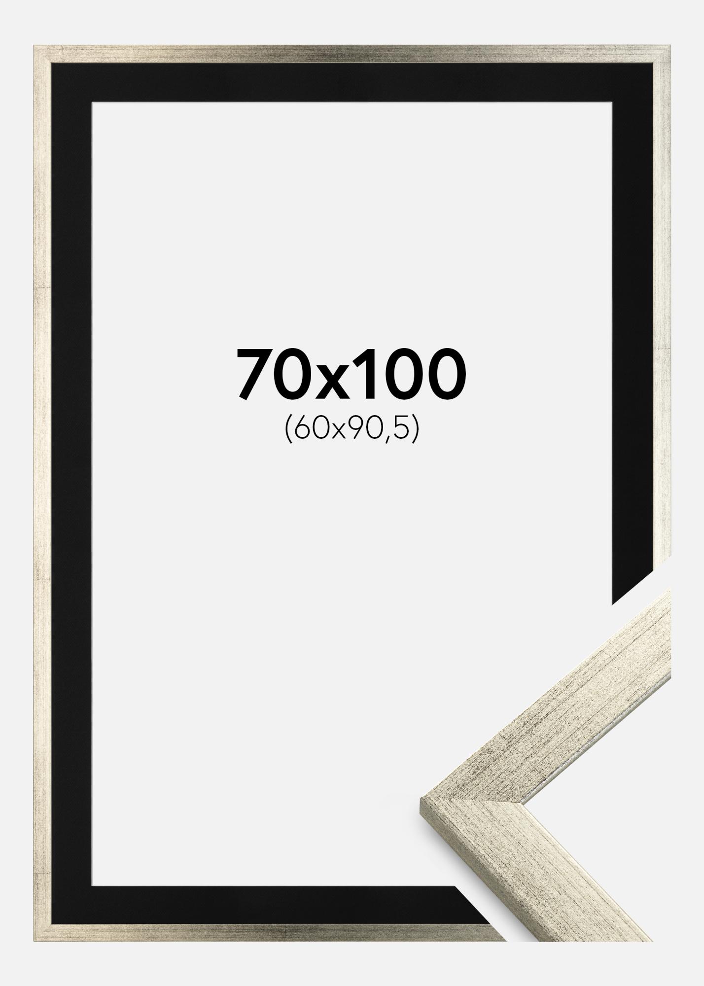 Ramme Stilren Sølv 70x100 cm - Passepartout Svart 61x91,5 cm