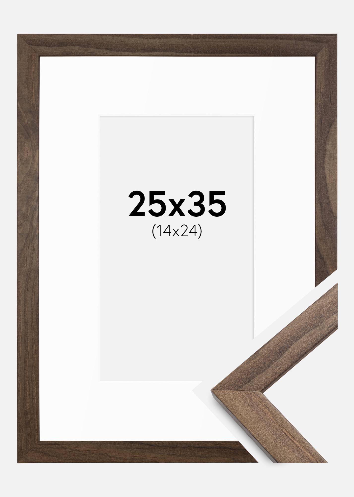 Ramme Stilren Valnøtt 25x35 cm - Passepartout Hvit 15x25 cm