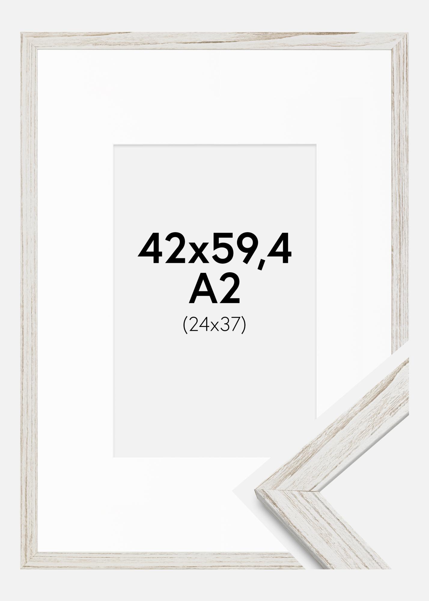 Ramme Stilren Vintage Hvit 42x59,4 cm - Passepartout Hvit 25x38 cm