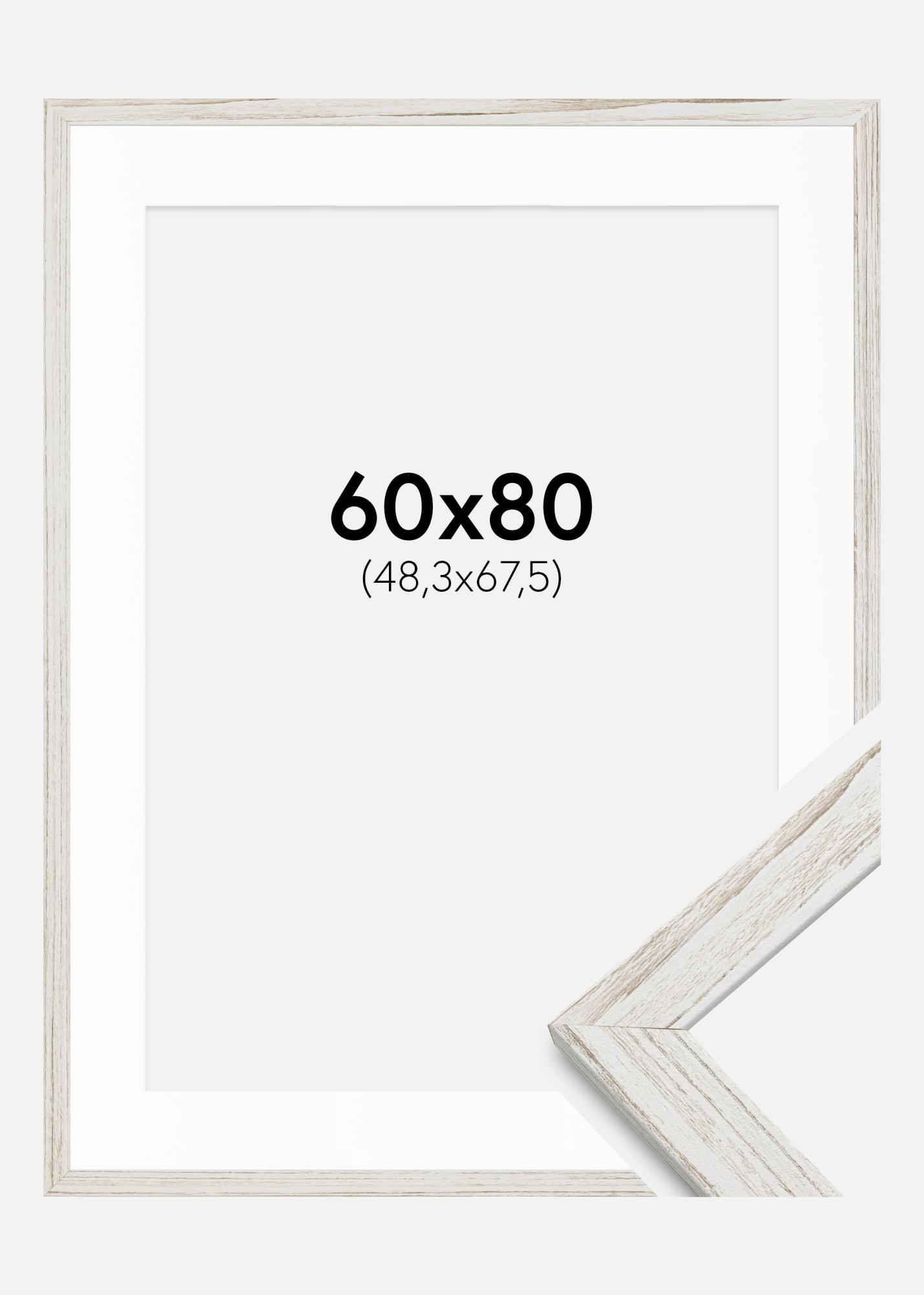 Ramme Stilren Vintage Hvit 60x80 cm - Passepartout Hvit 49,3x68,5 cm