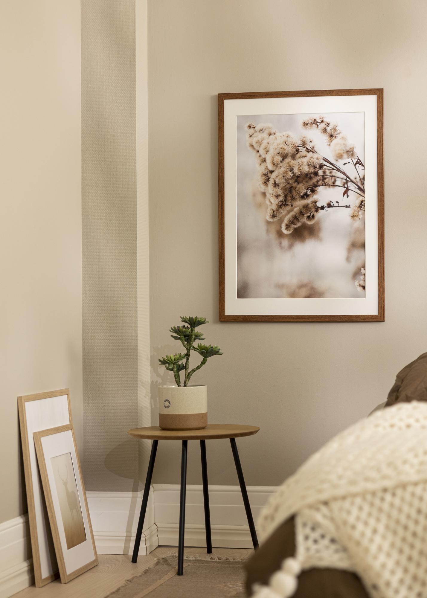 Rammen leveres med en hvit passepartout som rammer inn bildet ditt på en smakfull måte. Passepartouten er tilpasset bilder i størrelsen 28x28 cm, noe som gir en vakker kontrast mot rammes trefarge og løfter frem motivet på en elegant måte.