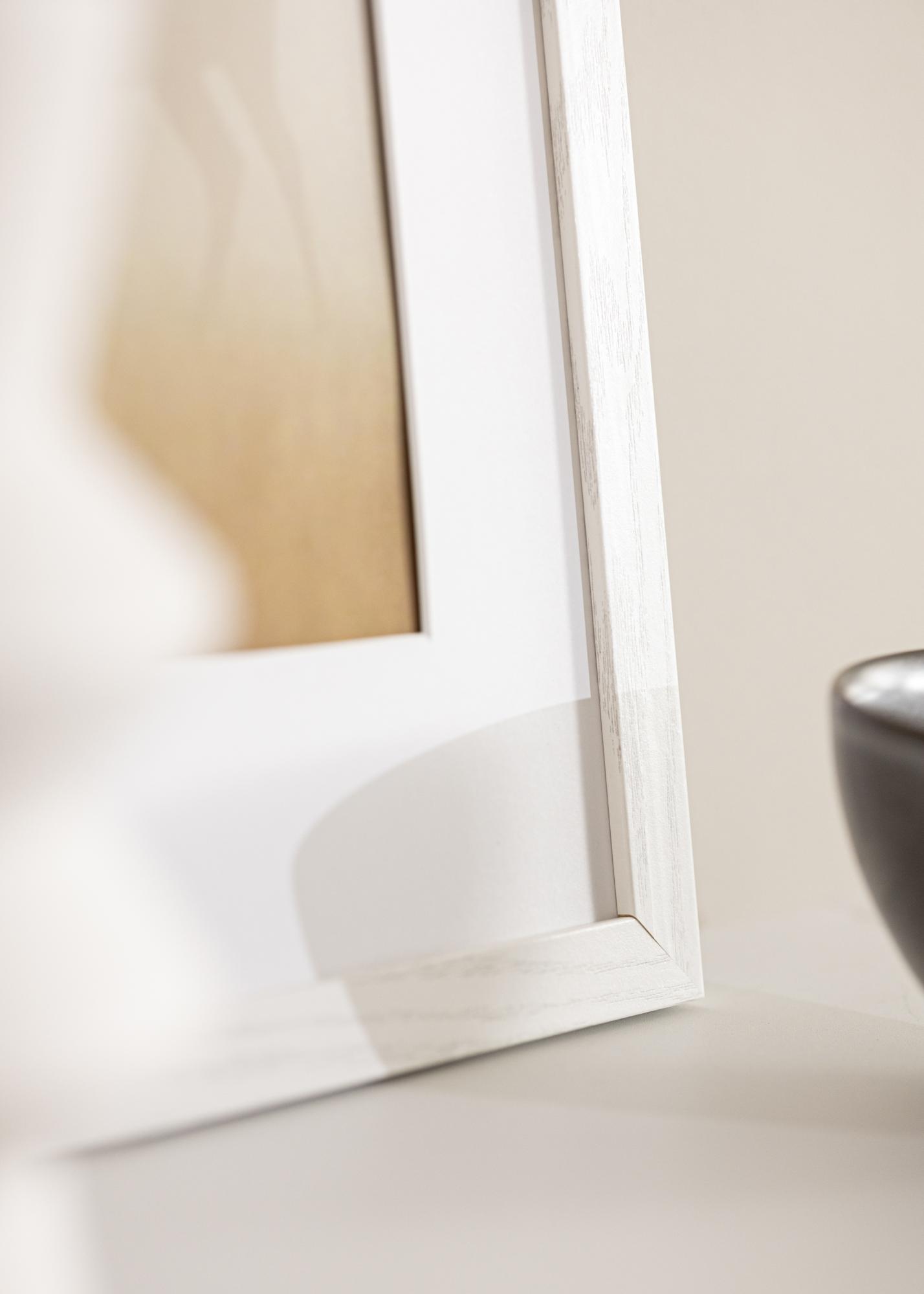 Rammen har en bredde på 20 mm og en dybde på 14 mm, som gir en robust og stabil følelse. Den matte hvite finishen komplementerer alle typer interiør og lar bildene dine tale for seg selv. Med ytterligere mål på 42x52 cm er denne rammen perfekt for å skape en imponerende veggdekorasjon.