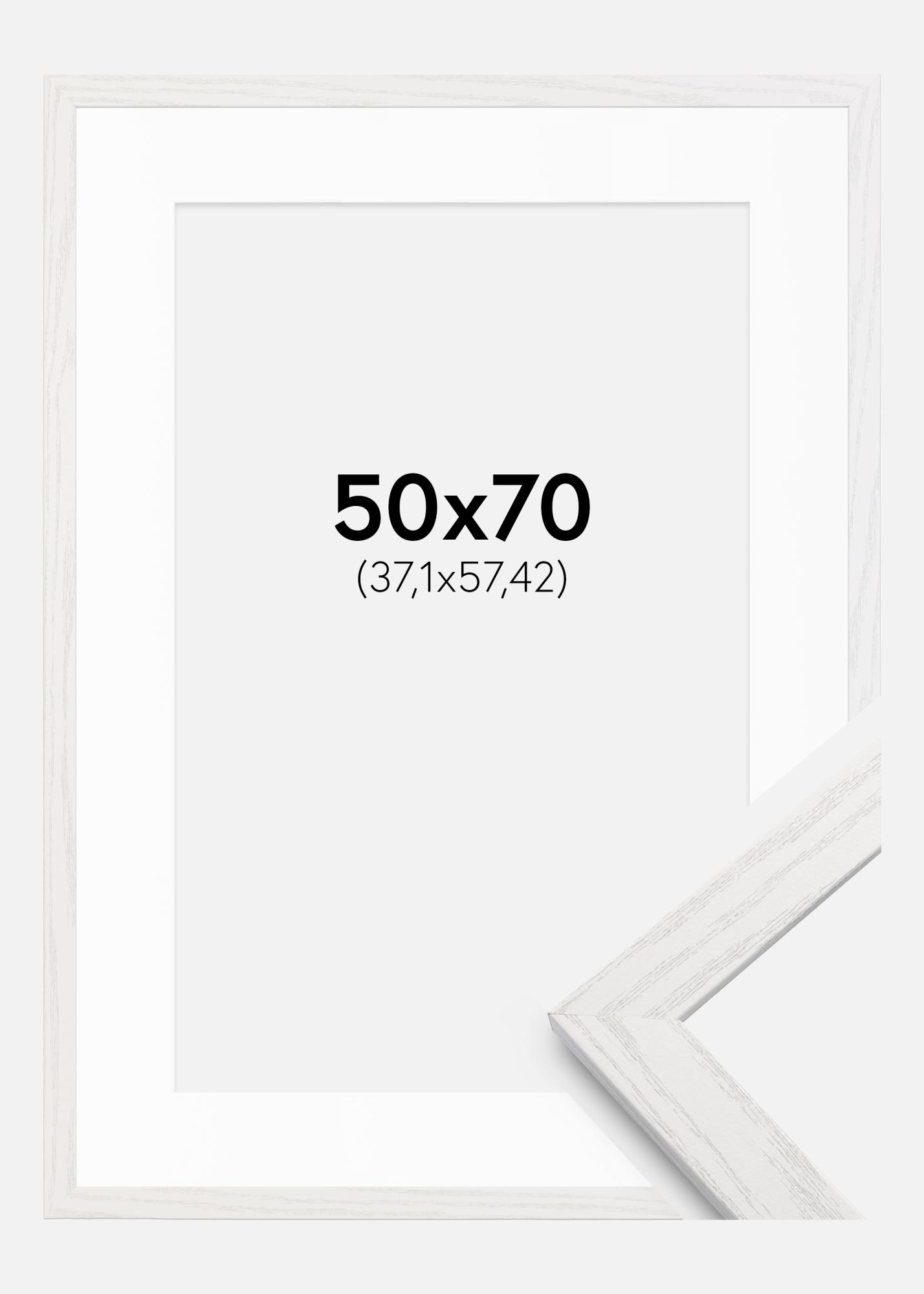 Ramme Stilren Hvit eik 50x70 cm - Passepartout Hvit 15x23 inches