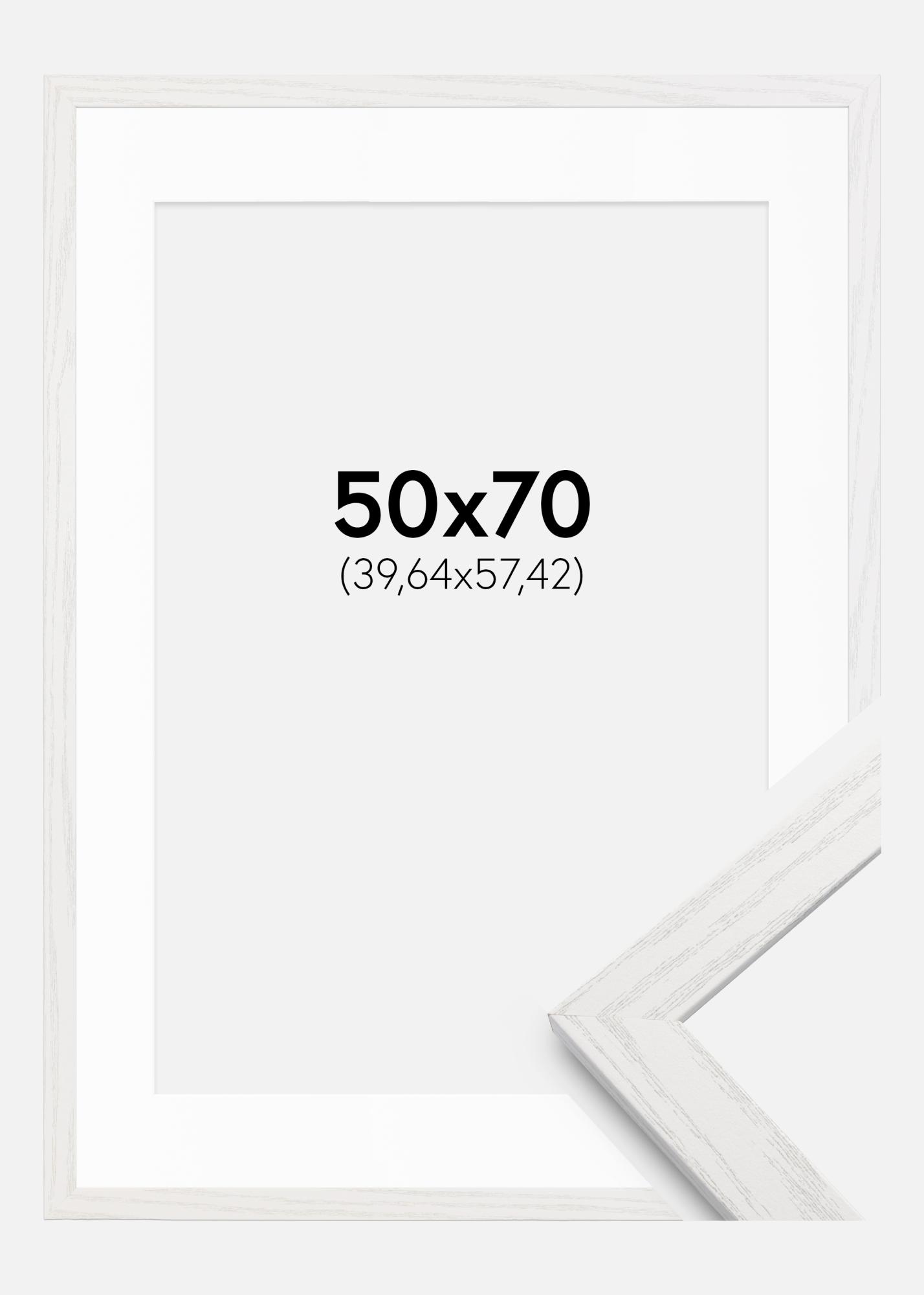 Ramme Stilren Hvit eik 50x70 cm - Passepartout Hvit 16x23 inches