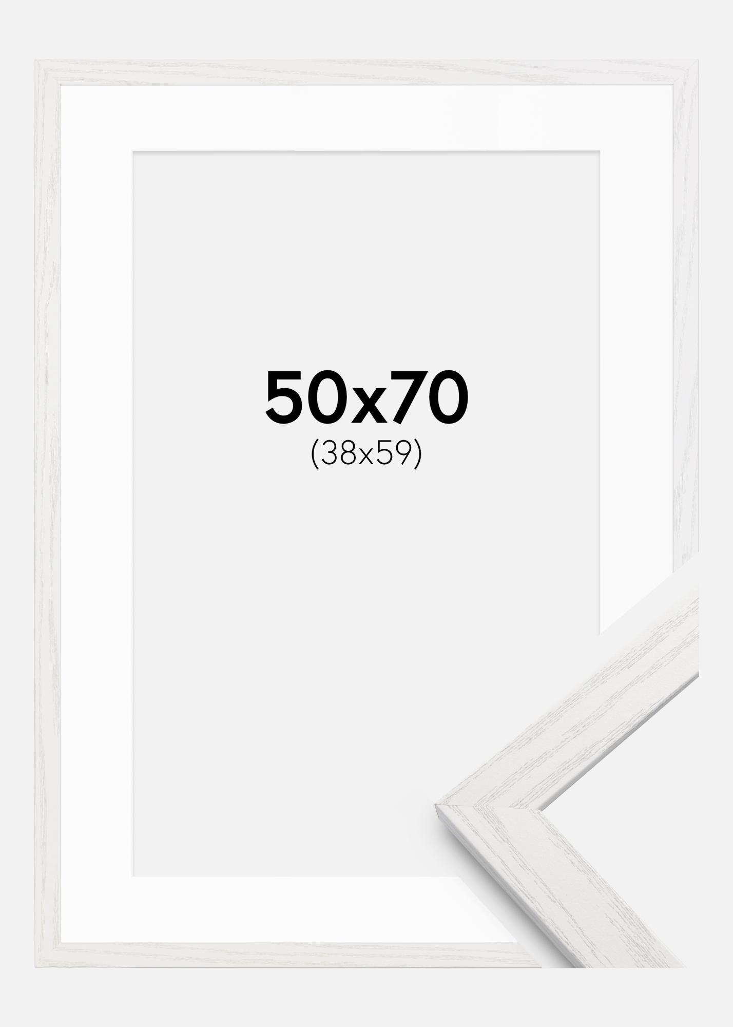 Forvandle bildene dine til kunstverk med vår elegante ramme i hvit finish, komplett med en stilren passepartout. Denne rammen er designet for å passe bilder i størrelsen 39x60 cm og har en total yttermål på 52x72 cm. Med en bredde på 20 mm og en dybde på 14 mm, gir rammen en robust og samtidig sofistikert innramming til dine favorittbilder.