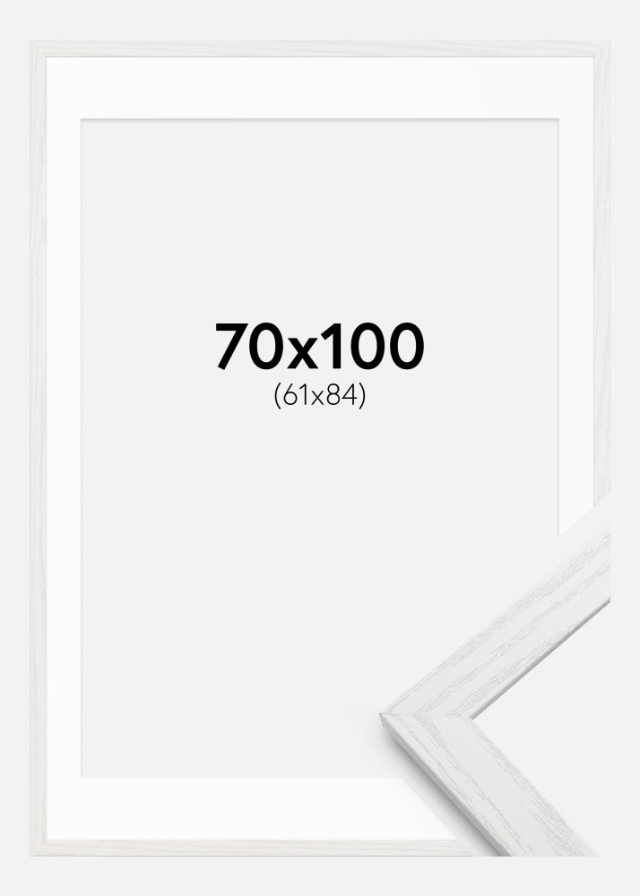 Rammen er utstyrt med en hvit passepartout som passer bilder i størrelsen 62x85 cm. Passepartouten skaper en vakker innramming som gir motivet ditt ekstra dybde og fokus. Ved å bruke en passepartout beskytter du dessuten bildet ditt fra å komme i direkte kontakt med glasset, noe som kan forhindre skader og bevare bildets kvalitet over tid.