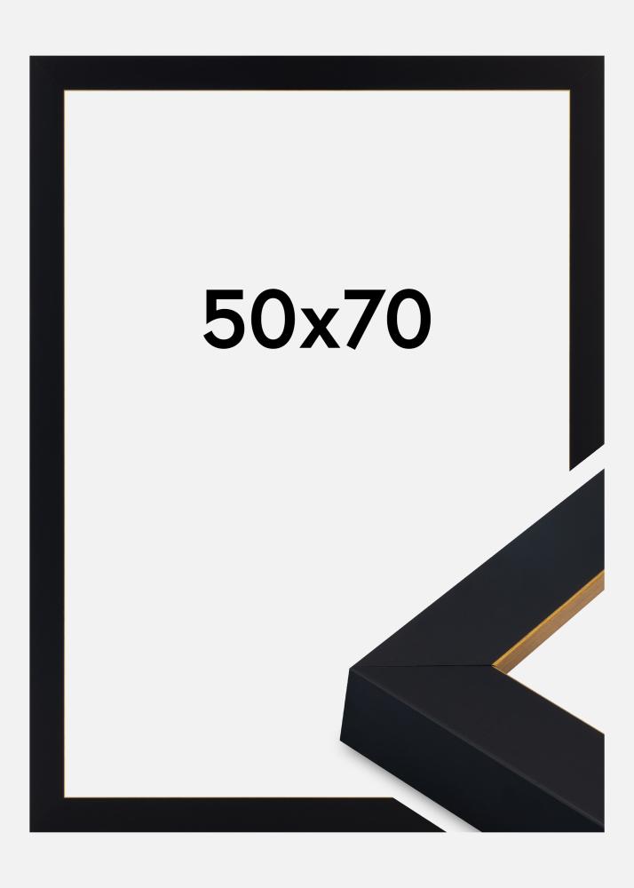 Denne elegante fotorammen er perfekt for å fremheve dine favorittmotiver i størrelsen 50x70 cm. Med et moderne og stilrent design kombinerer den en glatt, blank overflate i Svart med en elegant kant i Gull. Den smale profilen gir et rent og grafisk uttrykk som lar motivet stå i sentrum.