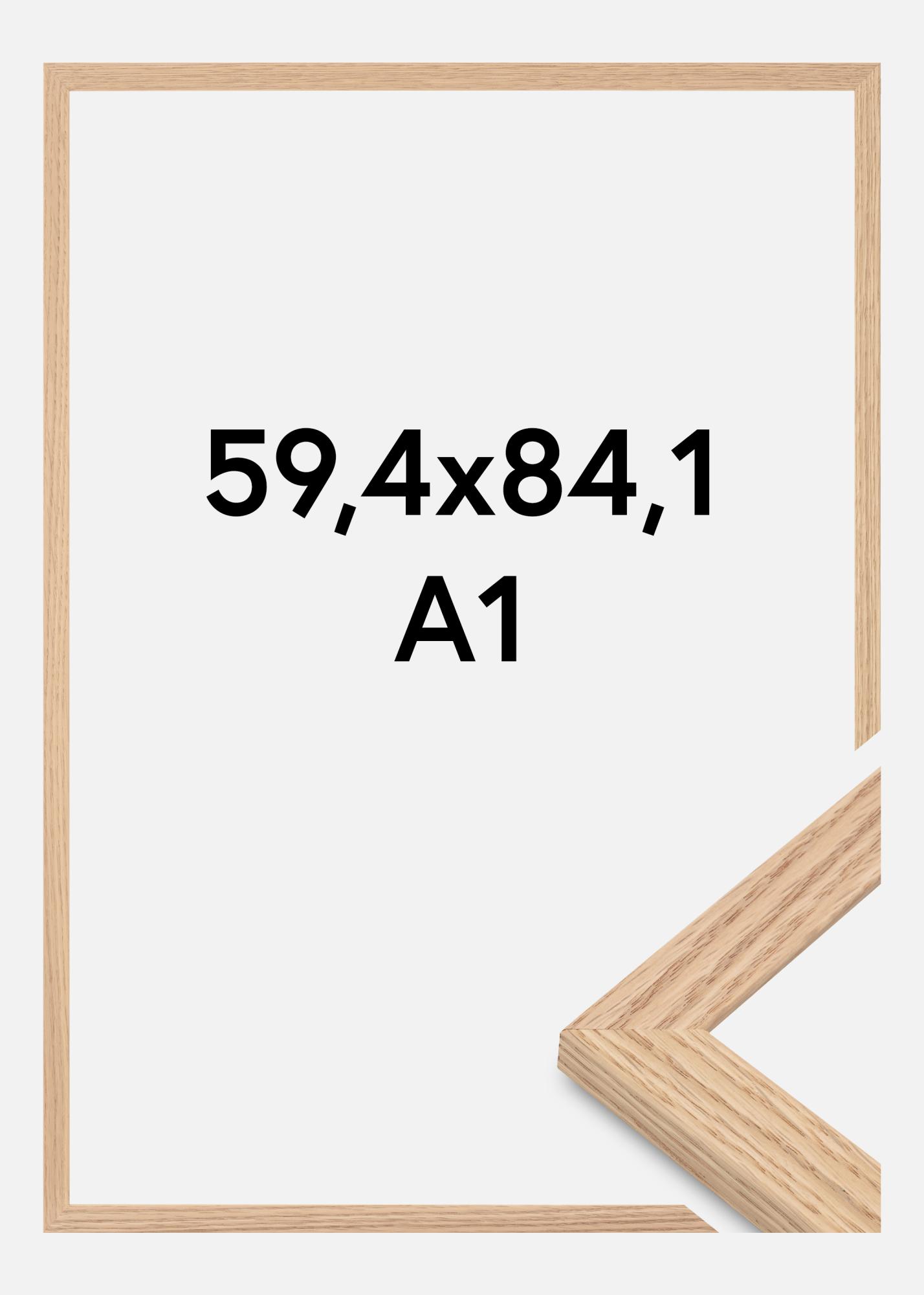Rammen er tilpasset for motiv i størrelsen 59,4x84,1 cm (A1), noe som gjør den perfekt for større bilder og plakater. Med en rammestripe som er 20 mm bred og en dybde på 15 mm, gir denne bilderammen en robust og solid følelse. Den er utstyrt med metallhengere på baksiden, noe som gjør det enkelt å henge den opp både horisontalt og vertikalt, avhengig av hva som passer ditt motiv best.
