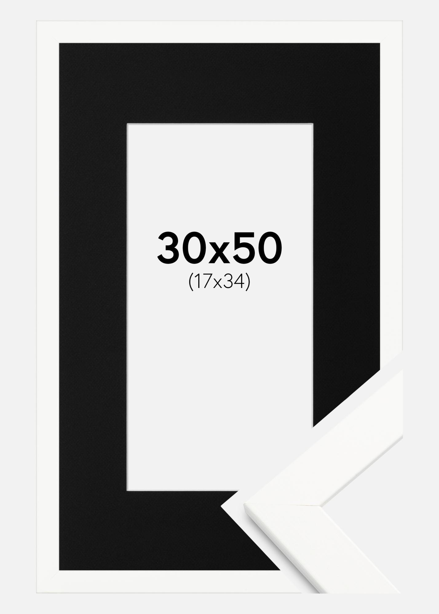 Ramme Trendline Hvit 30x50 cm - Passepartout Svart 18x35 cm
