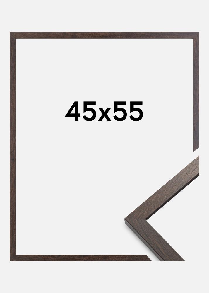Denne valnøttfargede fotorammen er en perfekt kombinasjon av stil og funksjonalitet. Med en størrelse på 45x55 cm er den ideell for å fremheve dine favorittfotografier, kunstverk eller plakater. Den mørkebrune, matte finishen gir en varm og naturlig følelse som smelter inn i både klassiske og moderne interiører. Den minimalistiske designen med en smal ramme på 15 mm skaper en diskret innramming som lar motivet stå i sentrum.