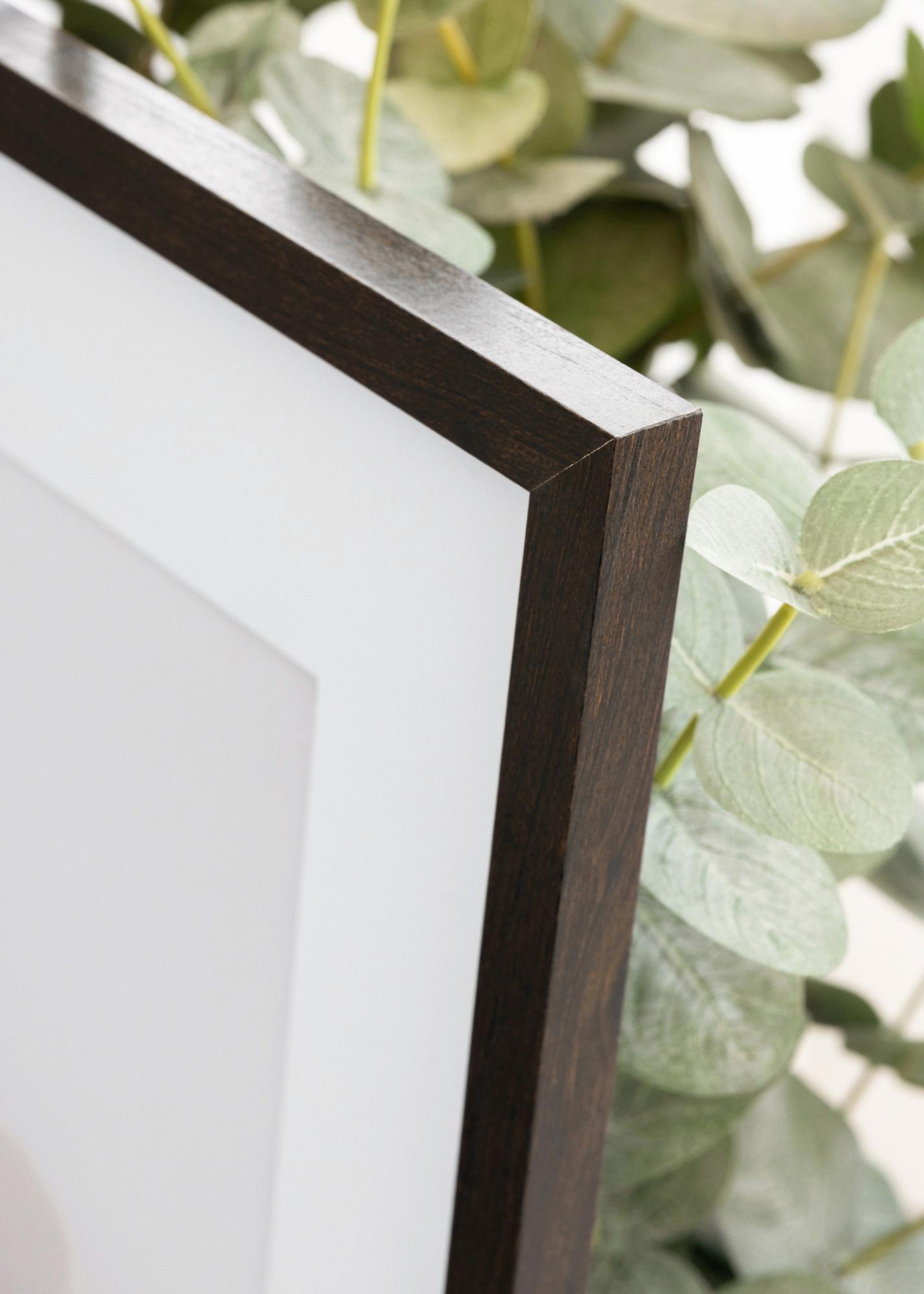 En ramme i nyanser av valnøttre gir motivene dine en naturnær innramming med høy eleganse. Dette er en modell med 14 mm bred ramlist med klassisk firkantet profil samt krystallklart akrylglass. Akrylglass er en glassvariant som er uknuselig og lett i vekten, noe som gjør dette til en passende ramme for deg som ønsker en lettere opphengning.