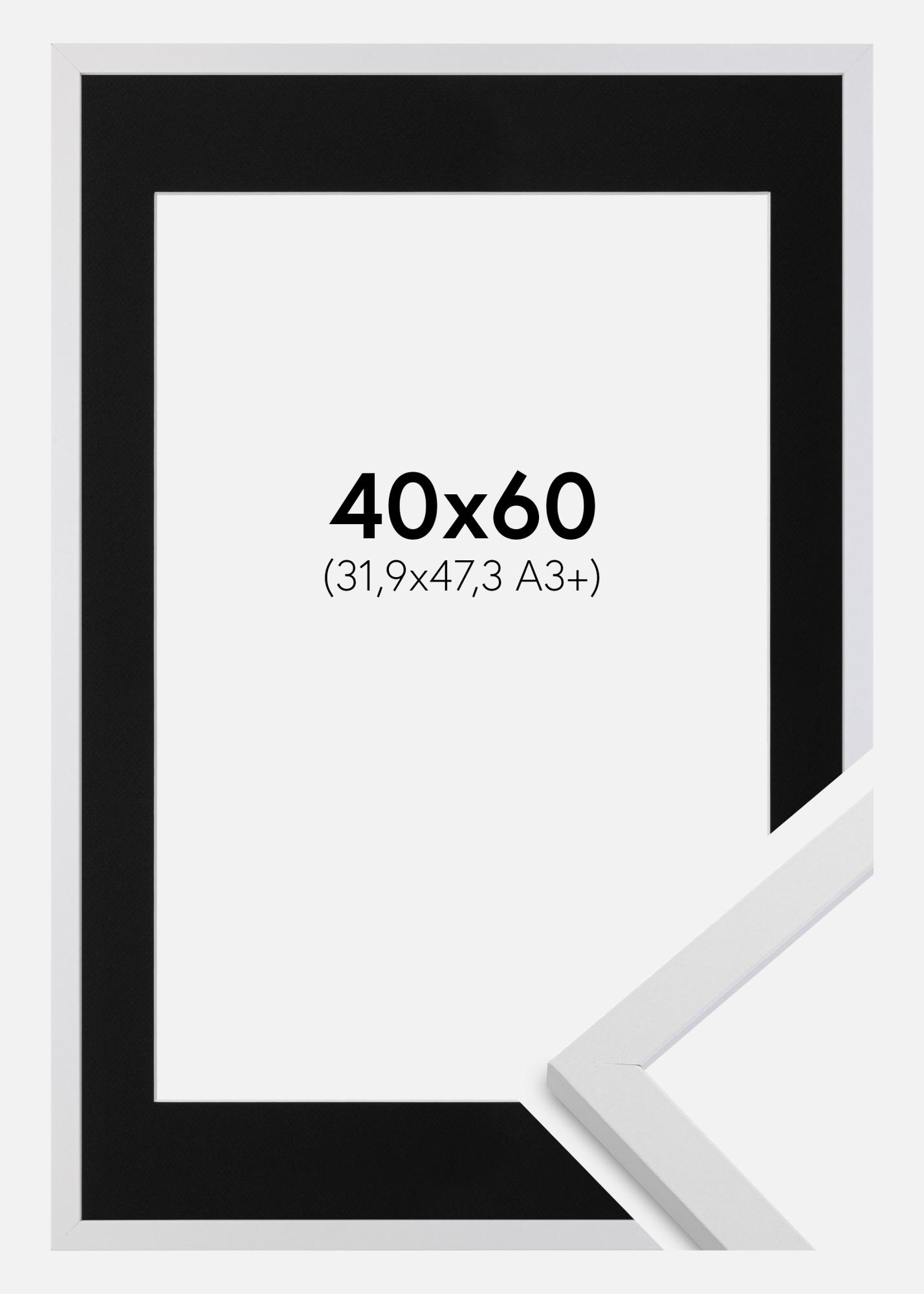 Ramme Trendy Hvit 40x60 cm - Passepartout Svart 32,9x48,3 cm (A3+)