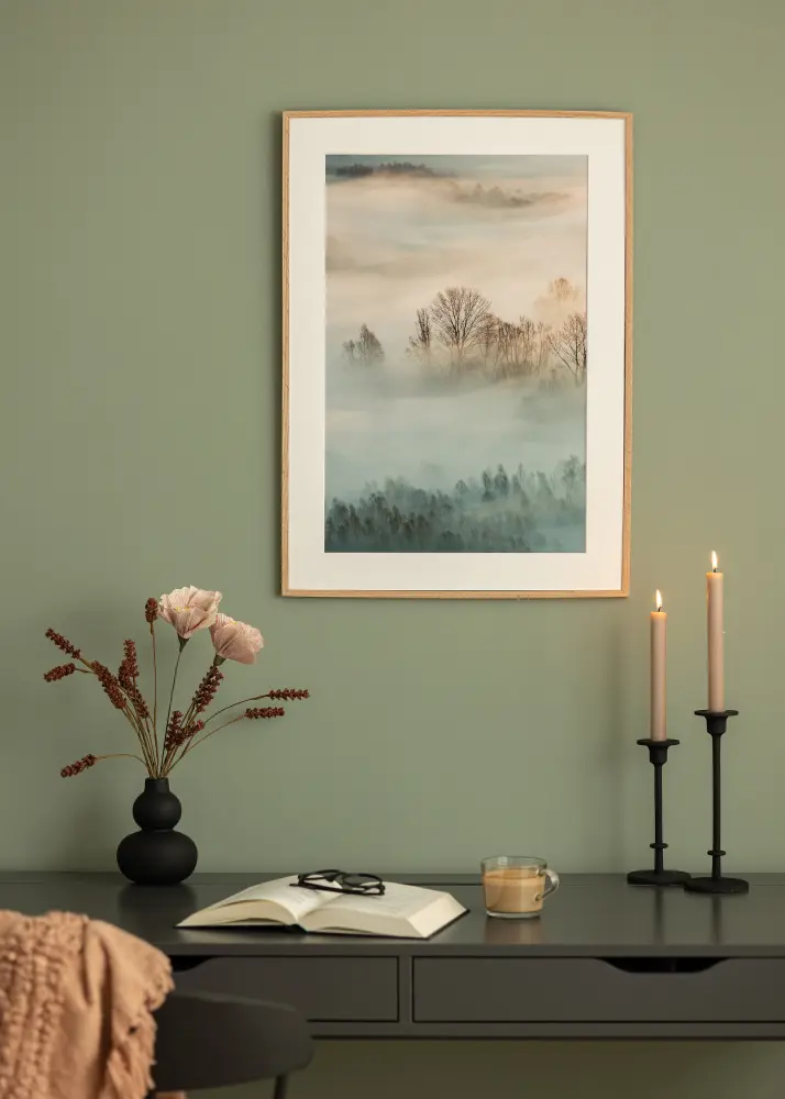 Denne elegante eikemønstrede rammen med hvit passepartout er det perfekte valget for å fremheve dine favorittbilder. Med en bildestørrelse på 21x21 cm og en matt finish gir den et stilrent og moderne inntrykk i hjemmet ditt.