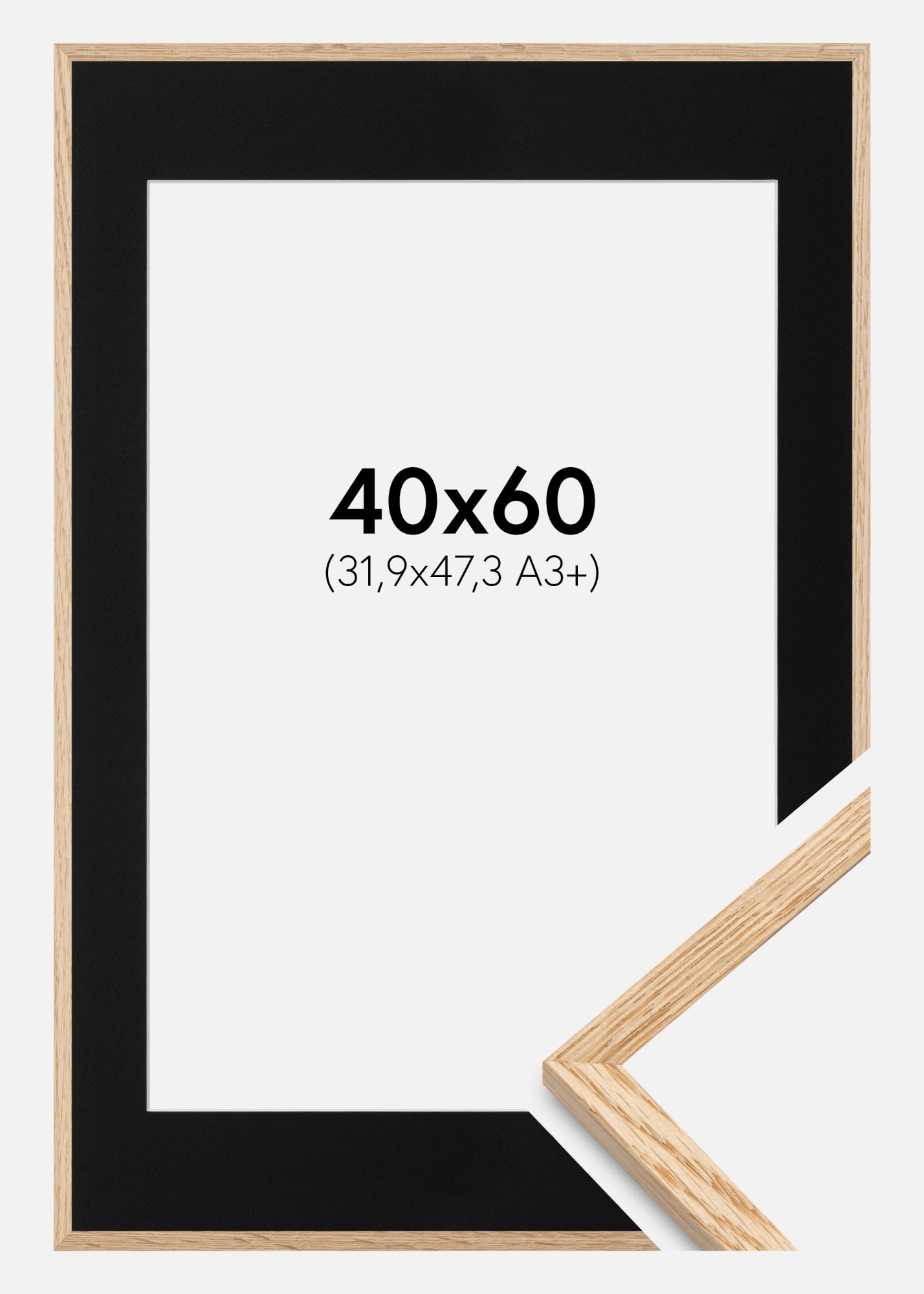 Ramme Tynn Eik 40x60 cm - Passepartout Svart 32,9x48,3 cm (A3+)