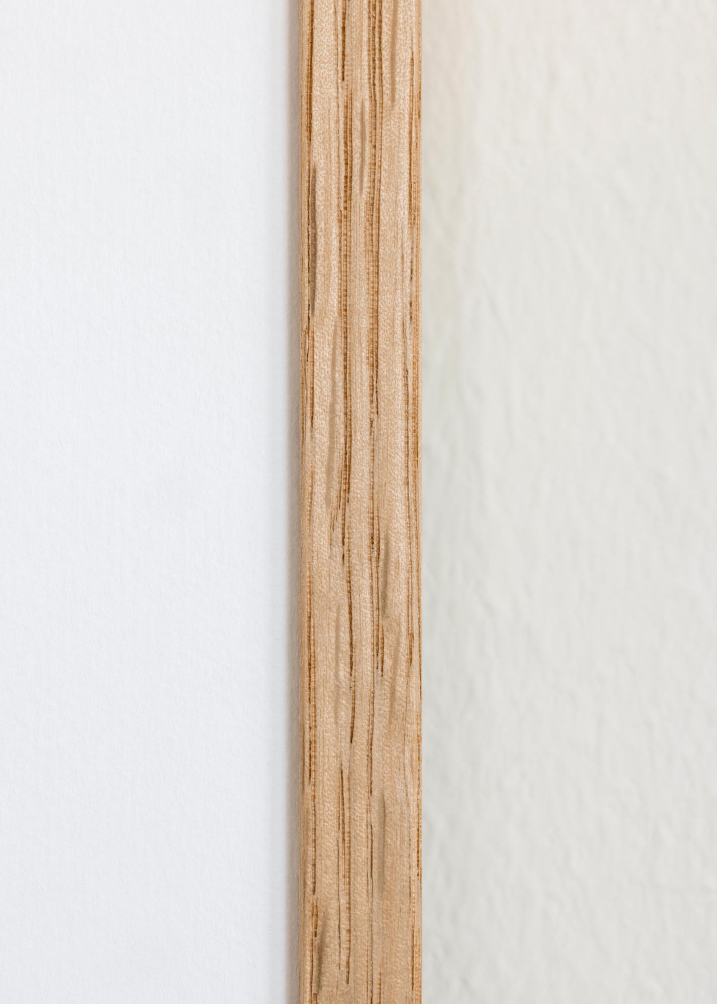 Rammen er laget av eiketre og har naturlig farge og ubehandlet overflate. Den er utstyrt med akrylglass, som er både lett og uknuselig – samtidig som den har samme klare skarphet som vanlig glass!