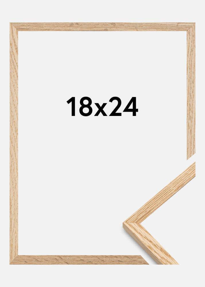 Rammen er laget av eiketre og har naturlig farge og ubehandlet overflate. Den er utstyrt med akrylglass, som er både lett og uknuselig – samtidig som den har samme klare skarphet som vanlig glass!
