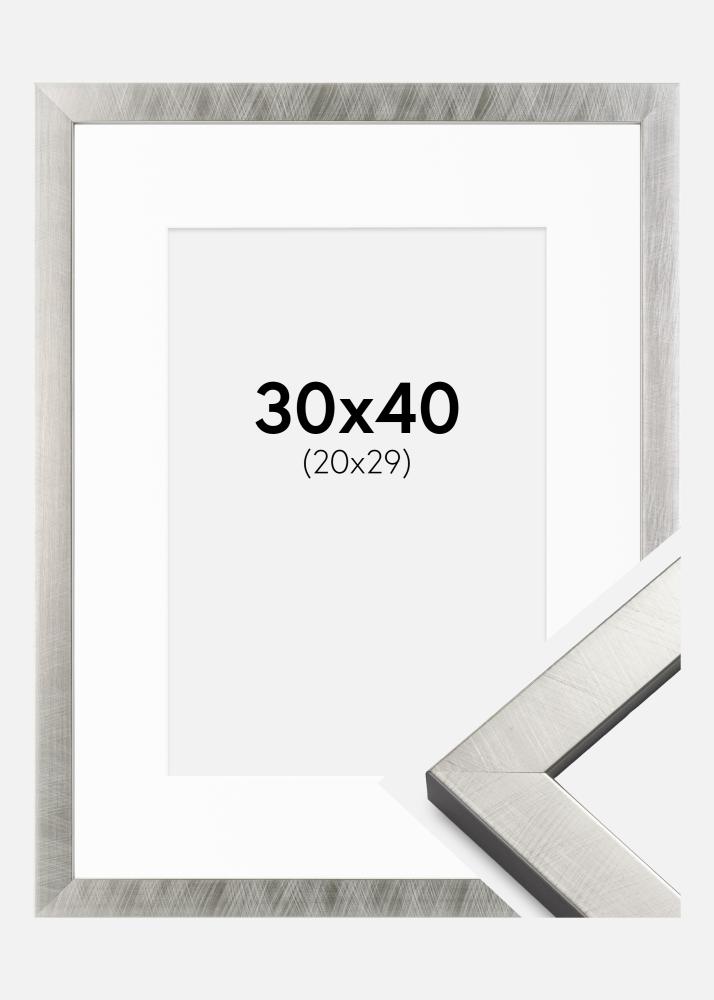 Ramme Uppsala Sølv 30x40 cm - Passepartout Hvit 21x30 cm