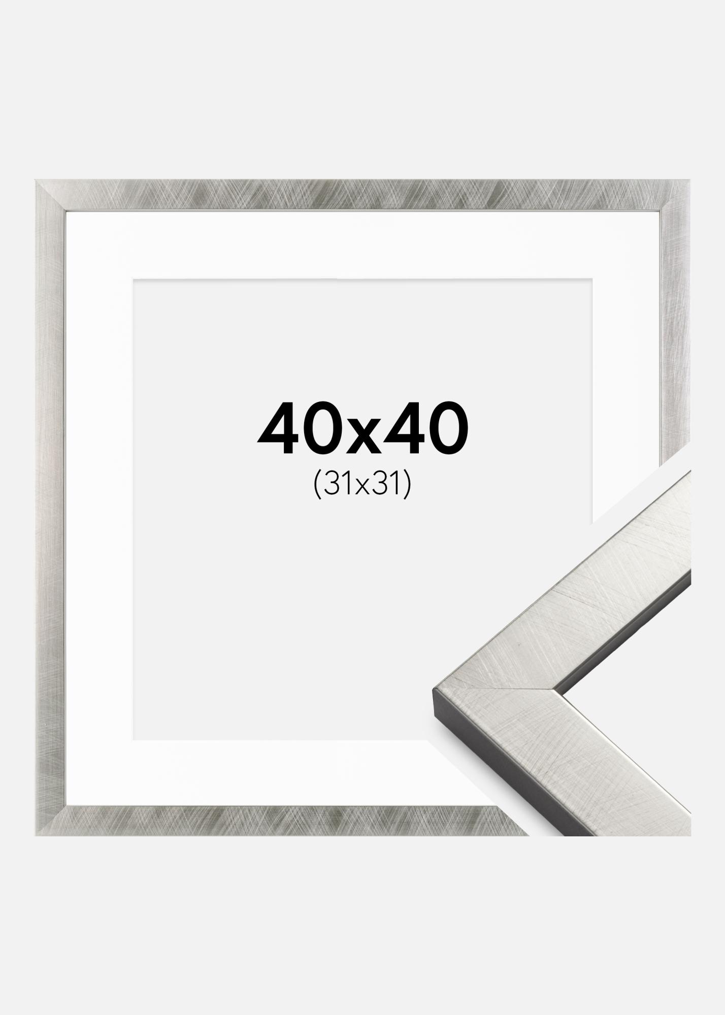 Ramme Uppsala Sølv 40x40 cm - Passepartout Hvit 32x32 cm