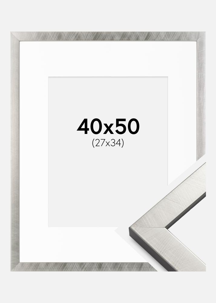 Ramme Uppsala Sølv 40x50 cm - Passepartout Hvit 28x35 cm
